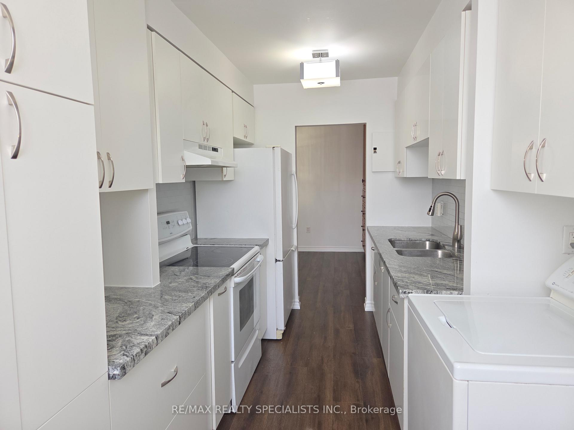 Freshly painted and ready to call home, this fully Renovated 2-bdrm condo is over 900 sq ft. Renovated Kitchen with Quartz Countertops and Loads Of Cabinetry and storage. Open Concept Living room/Dining room features Wall-To-Wall built in Cabinets. Renovated Bathrooms; Ensuite Washer/Dryer. Extra Large Ensuite Storage Closet with built in shelving. Enclosed Carpeted Solarium Can Be Used As Den Or Additional Living Space. Spacious Master Bdrm W/2Pc Ensuite Bath And Double Closet. One underground parking spot. Very clean and well run condominium. A great place to call home.