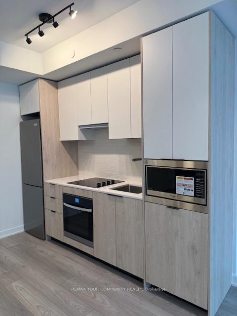Welcome to Verge Condo, built by RioCan. This brand-new one-bedroom, one-bathroom suite located in the highly desirable South Etobicoke, where connections, conveniences and opportunities converge, to create easy-access living. Situated close to the Gardiner Expressway, 15 min drive to downtown Toronto, Highway 427, Mimico Go Station, and Islington Station. 5 min drive to Sherway Gardens and restaurants. This modern unit features soaring 9-foot ceilings, laminate flooring throughout, and a bright open-concept layout. The kitchen is equipped with built-in and stainless steel appliances, offering both style and functionality. A convenient stacked washer and dryer is located within the unit for everyday ease. No parking and locker included.