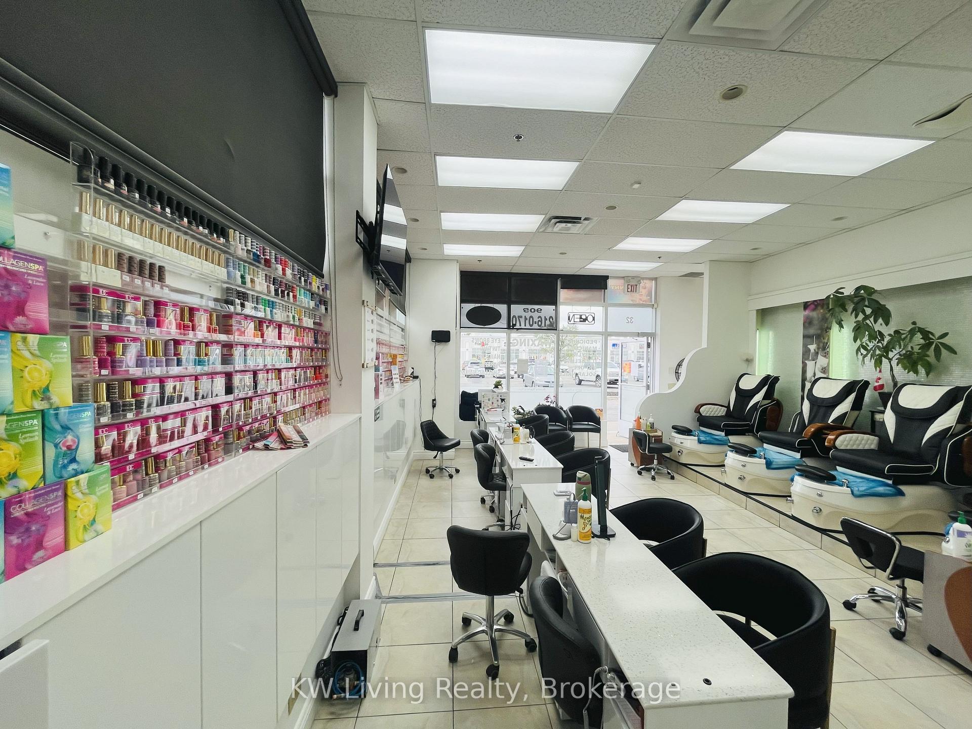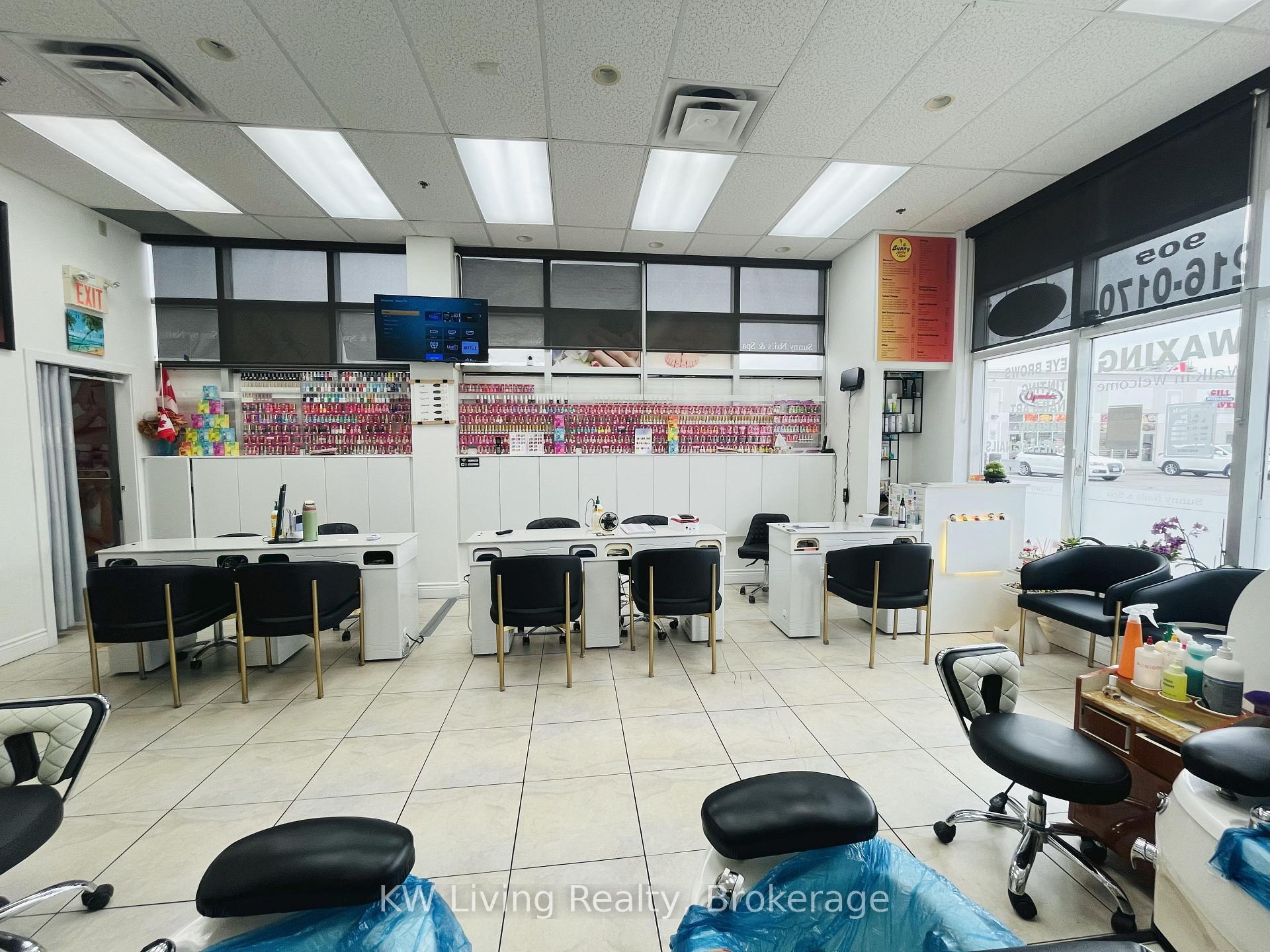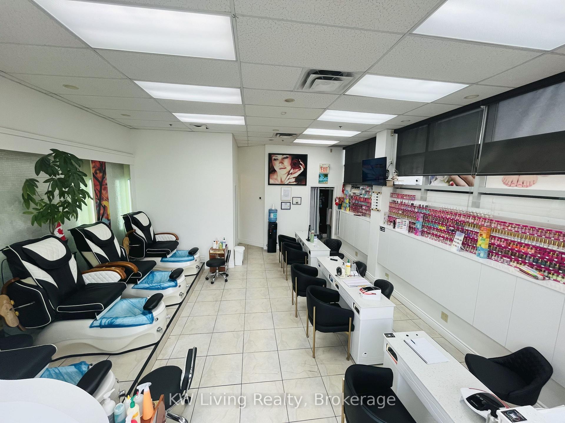 Turnkey nail salon for sale in a prime corner unit of a busy plaza with high visibility, heavy foot traffic, and excellent exposure. Recently renovated with a modern interior, the salon features 4 pedicure chairs, 5 manicure stations, a private treatment room with sink (ideal for waxing, facials, or eyelash extensions), and in-unit laundry. Located close to Shoppers World, major highways, and all amenities, the salon is surrounded by a dense residential area and complementary businesses, with plenty of customer parking. This is a move-in ready opportunity with strong growth potential.