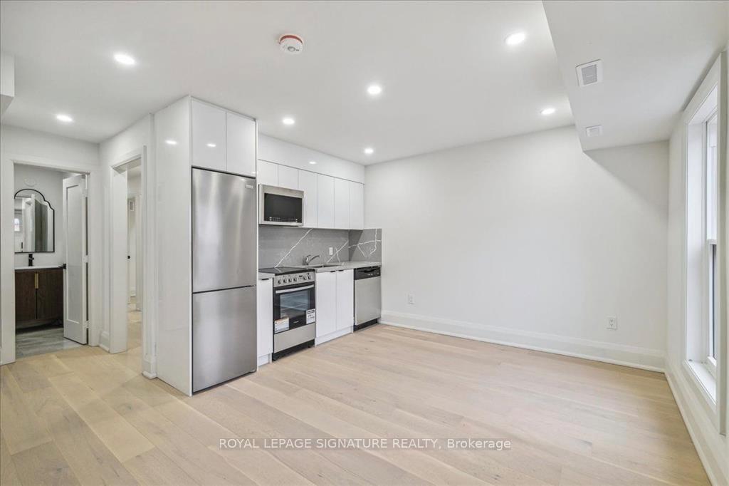 Rear door main entrance leads into a brand-new kitchen complete with new appliances, custom textured feature wall, and modern pot lights. Spacious 3-piece bathroom with a walk-in shower. Three generously sized bedrooms, each with closets and new pot lights throughout.Enjoy the convenience of private laundry, a separate tankless hot water heater, and an independent furnace for added comfort and efficiency.Unbeatable location just steps to the GO Train and UP Express (21 minutes to Pearson, 9 minutes to Union), Bloor Street, TTC, the Railpath, groceries, restaurants, and parks - ideal for commuters heading downtown or to the airport. Street parking permits available through the City.
