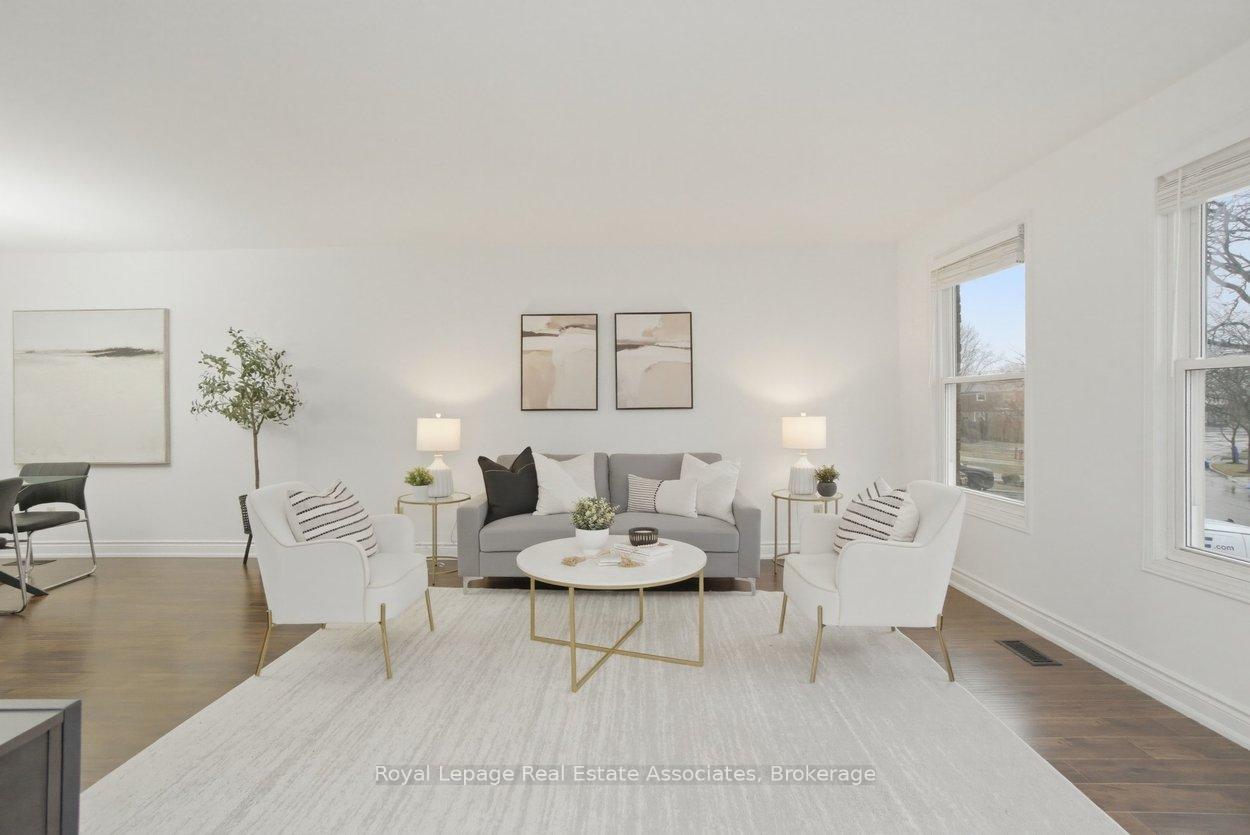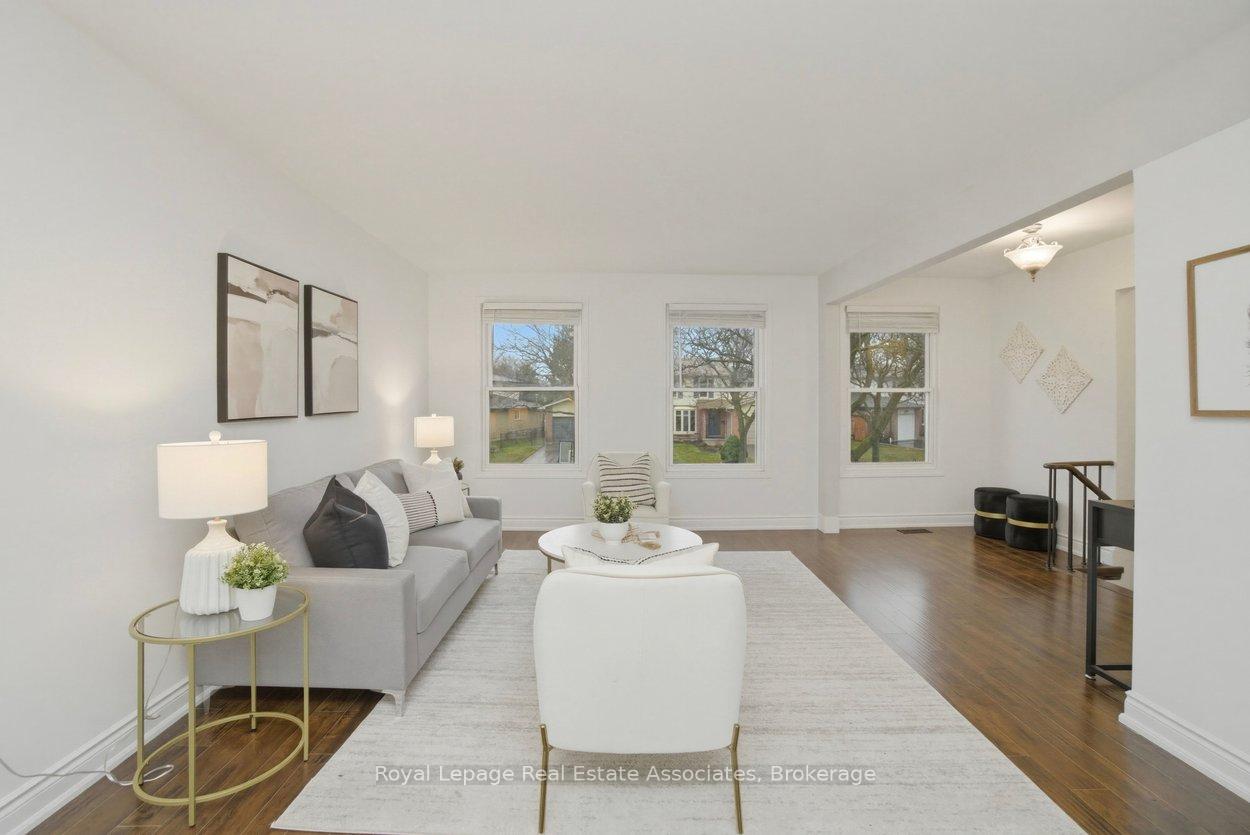 Set on a quiet street in Milton's established Timberlea community, this spacious 3+1 bedroom backsplit offers a layout that truly supports family living. With approximately 1,860 sq. ft. above grade plus a fully finished lower level with its own entrance, the home provides flexibility for multi-generational living, extended stays, or simply more room to spread out. The main floor features a bright combined living and dining area and an eat-in kitchen with stainless-steel appliances and hardwood flooring that continues through the principal living spaces. Upstairs, you'll find three bedrooms, including a spacious primary bedroom with a 5-piece semi-ensuite and a separate adjoining vanity area that provides added privacy and works well for shared morning routines. A few steps down from the main floor, the ground-level family room is accessed through French doors and opens directly to the backyard through sliding doors, creating an easy indoor-outdoor flow. This level also includes a dedicated home office, a full 4-piece bathroom, and a laundry room with direct yard access. The fully finished lower level is ideal for independent living or entertaining, featuring a generous recreation area with a gas fireplace, a full kitchen with granite counters and an island, and a private fourth bedroom with a sliding barn door. Tile flooring is found in the kitchen and bathroom, with laminate in the adjoining living spaces. The backyard is designed for low-maintenance enjoyment with high-end artificial turf, a shed, gas BBQ hookup, and a concrete pad with two gazebos. Parking is abundant with a 4-car driveway and a 2-car attached garage. The sellers have especially loved the family-friendly feel of the neighbourhood -- with parks, schools, shops, and everyday conveniences all just a short walk or drive away. *Note - Home Linked Below Grade*