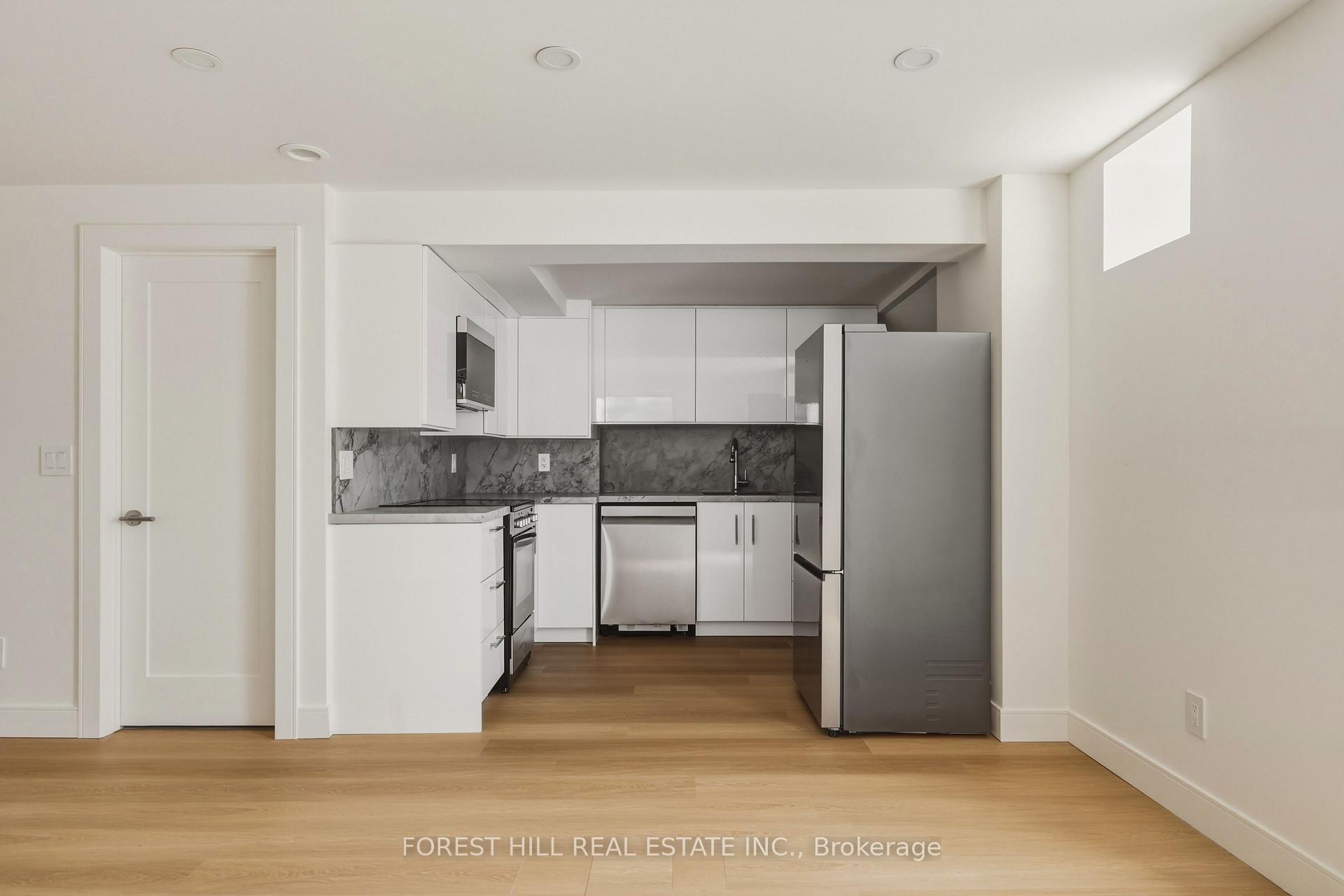 A rare opportunity to enjoy a fully renovated two-bedroom home in a fantastic neighbourhood with private access and exceptional convenience.Newly renovated and thoughtfully designed, this bright lower-level residence offers the comfort and feel of main-floor living. Situated on grade with a private entrance, the home provides excellent accessibility and a highly functional layout rarely found in lower-level homes.The spacious interior features two generously sized bedrooms and a beautifully finished living space with modern updates throughout. The design-forward renovation incorporates quality finishes, clean lines, and carefully considered details that create a warm and contemporary atmosphere.The open living area offers great flow for everyday living, while the renovated kitchen features full-size appliances and ample storage. Generous closet space throughout the unit ensures practical living without compromising style.The spa-inspired bathroom is a standout feature, showcasing a glass-enclosed shower and striking microcement finishes that create a calm, minimalist aesthetic rarely found in rental homes.Perfectly located just steps from Dufferin Station, the home is moments from the shops and restaurants of Bloor Street West, the vibrant energy of Geary Avenue, the green space of Dovercourt Park, and everyday conveniences at Dufferin Mall.