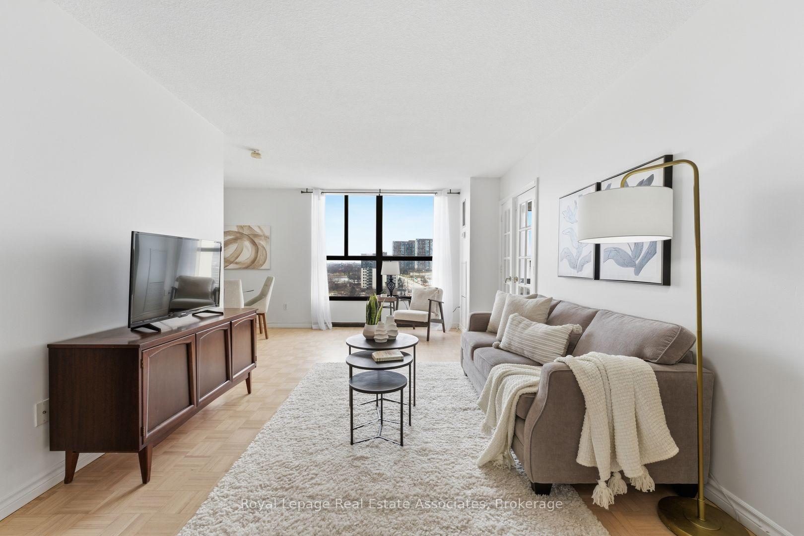 With 1265 square feet, 2 large bedrooms and a huge den graced with double French doors, this spacious and bright unit is just what you've been looking for! The kitchen features modern white cabinetry, stainless steel appliances, ceramic floors, tile backsplash, double sink and lots of storage. Perfect for creating those wonderful holiday meals! The open concept living/dining space features large windows for lots of natural light, warm parquet floors and a walkout to the lovely balcony - a wonderful place to relax at the end of the day. The bedrooms include hardwood floors, big windows and large closets and the oversize den can easily serve as a third bedroom. Both washrooms have been updated with modern finishes, soft-close cabinets and ceramic flooring. There's an ensuite storage room and a massive ensuite laundry room with even more storage space! Public Transit options are plentiful with nearby Cooksville GO, numerous bus routes and the upcoming Hurontario LRT. Easy access to the QEW or 403 and just 16 minutes to Pearson Airport. Trillium Hospital is close by and there are fantastic shopping and restaurant options all along Dundas and Hurontario. Explore the numerous parks and trails in the vicinity, pop over to Cooksville Library for a good read or enjoy skating, fitness and swimming at Mississauga Valley Community Centre. This neighbourhood has everything you and your family need!