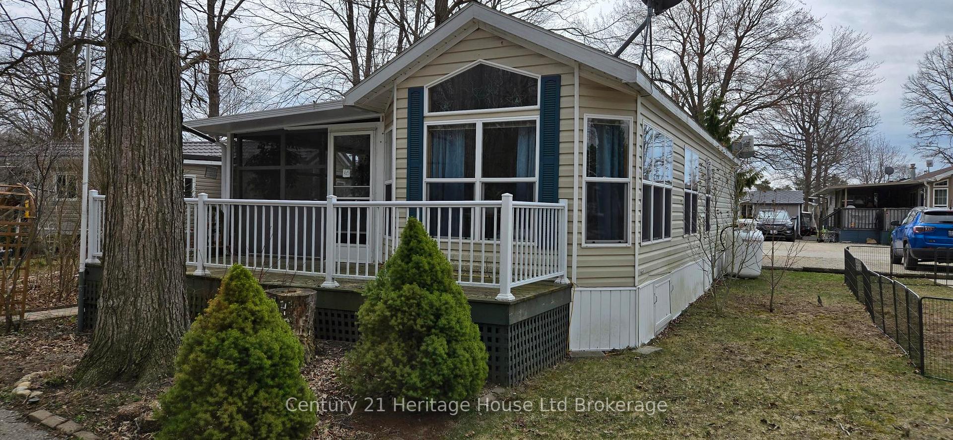 Care-free retirement living awaits you at Lyons Shady Acres!! The windows let in tons of natural light. The chalet ceiling adds height. The kitchen features ample cupboard space & sight-lines to the living room to make entertaining seamless. The Primary has built-in closets. The Florida room makes a great guest room or family room. Painted in light neutral colours. Enjoy the large front deck that that has a hook up for your BBQ. The covered deck has winter panels & extends your living space regardless of the weather. The shed can house all your gardening tools & winter storage for the patio furniture. The utility room has tons of storage. The friendly community is 50+ and park amenities include year round recreation hall that hosts year-round social events, shuffleboard board and more. The inground pool is open during the summer months. Community fire pit. Spend your time doing what makes you happiest instead of worrying about a large home & property to maintain. Country & carefree living conveniently located close to Woodstock & Brantford.