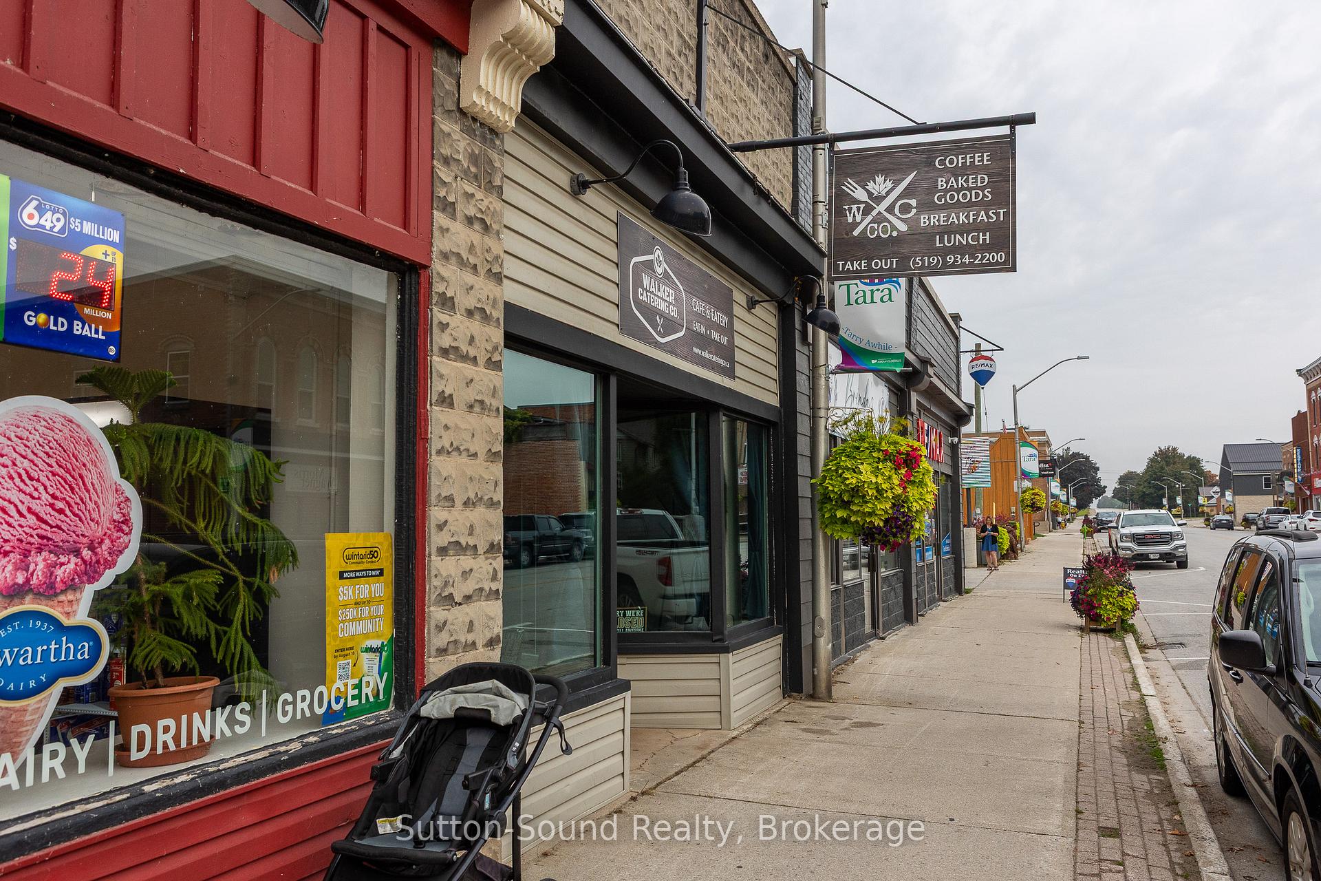 Welcome to this versatile commercial property with prime Main Street exposure in the charming village of Tara. Currently operating as a catering space, and formerly a restaurant, this property offers endless potential for your next business venture. Inside you'll find a functional layout with limited seating in the front, updated storage and work areas to the back, and two washrooms for convenience. A tidy, dry basement provides ample room for storage. The property has been well maintained, with the main flat roof replaced in 2021 and the back roof in good repair. Heating is provided by a gas furnace. An added bonus is the potential to re-establish a rear apartment, complete with space for an additional kitchen and 4-piece bathroom an excellent live-work opportunity for entrepreneurs looking to combine home and business in one location. Included in the sale are restaurant equipment and supplies, making this a turnkey opportunity for a bakery, café, pizza shop, or any creative venture you envision. While there is no dedicated parking, the excellent visibility and walkable location enhance accessibility for customers. Don't miss this chance to invest in a flexible commercial space with character, location, and multiple possibilities.
