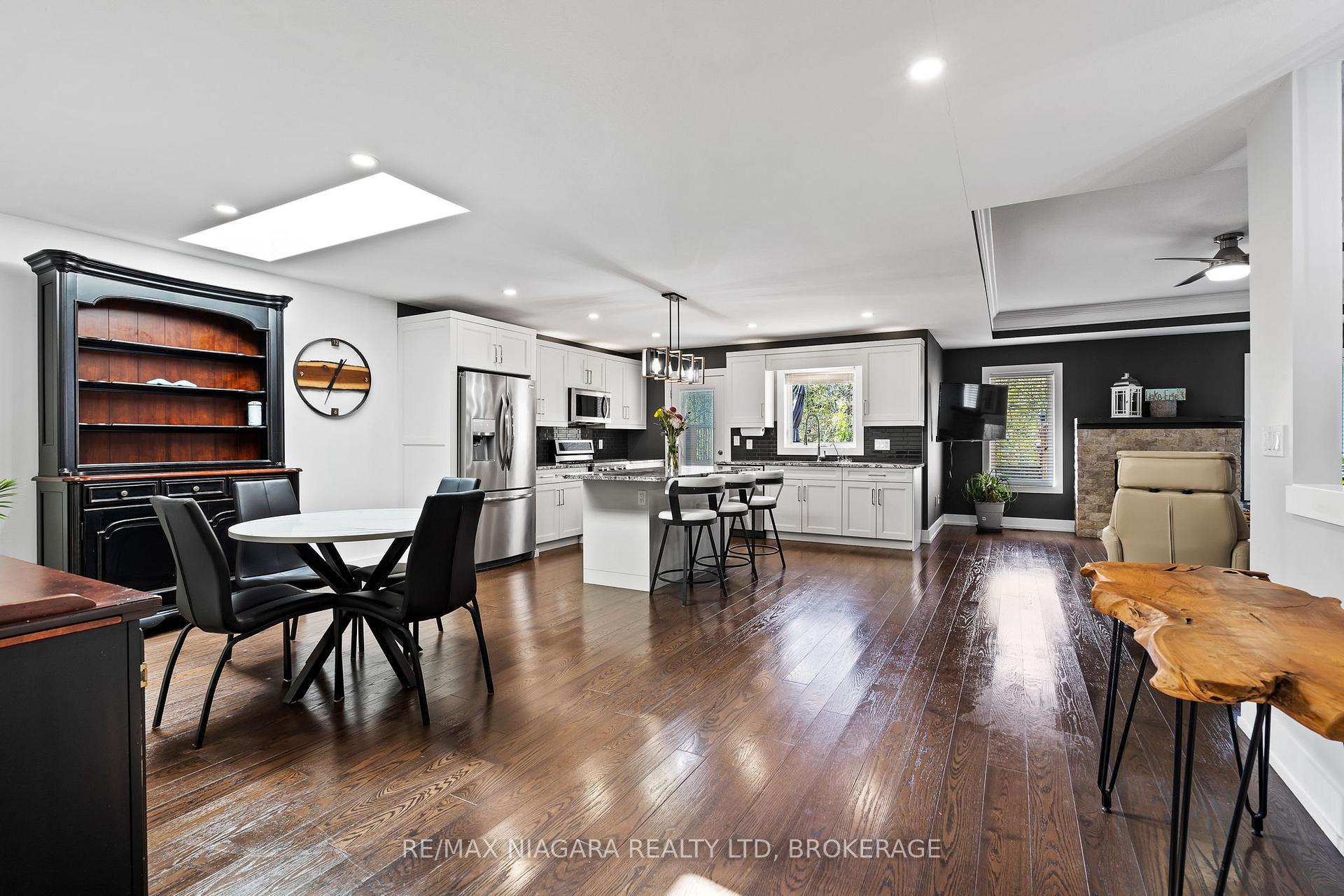 Welcome to this custom-built modern luxury home in the sought -after Westwood Estates, just minutes from Lake Erie. Perfectly situated on a quiet dead-end street in a prestigious neighbourhood, this home offers the ideal blend of elegance, comfort, and privacy. Enjoy the serene outdoor setting with a deck off the kitchen overlooking the pool and backing onto beautifully treed area- your own relaxing retreat. The double car aggregate concrete driveway (2024) adds curb appeal and durability. Inside, you'll be impressed by the exceptional craftsmanship and high-end finishes throughout, including hardwood flooring, high ceilings and recessed lighting. The open-concept main floor features a white custom kitchen with shaker style cabinets quartz countertops, an island and stainless-steel appliances. The living room showcases a cozy gas fireplace, perfect for entertaining or quiet evenings. The primary suite offers a spa-like 4 piece ensuite and walk-in closet. The main floor also includes a stylish 3- piece bathroom with quartz counters. The finished basement boasts high ceiling, large rec room with fireplace, and additional bedroom-ideal for guests or a home office. Additional features include entry from garage. This is truly exceptional home offering modern luxury in an unbeatable location.