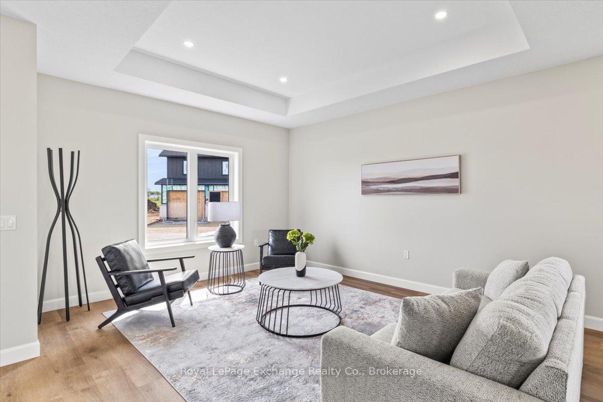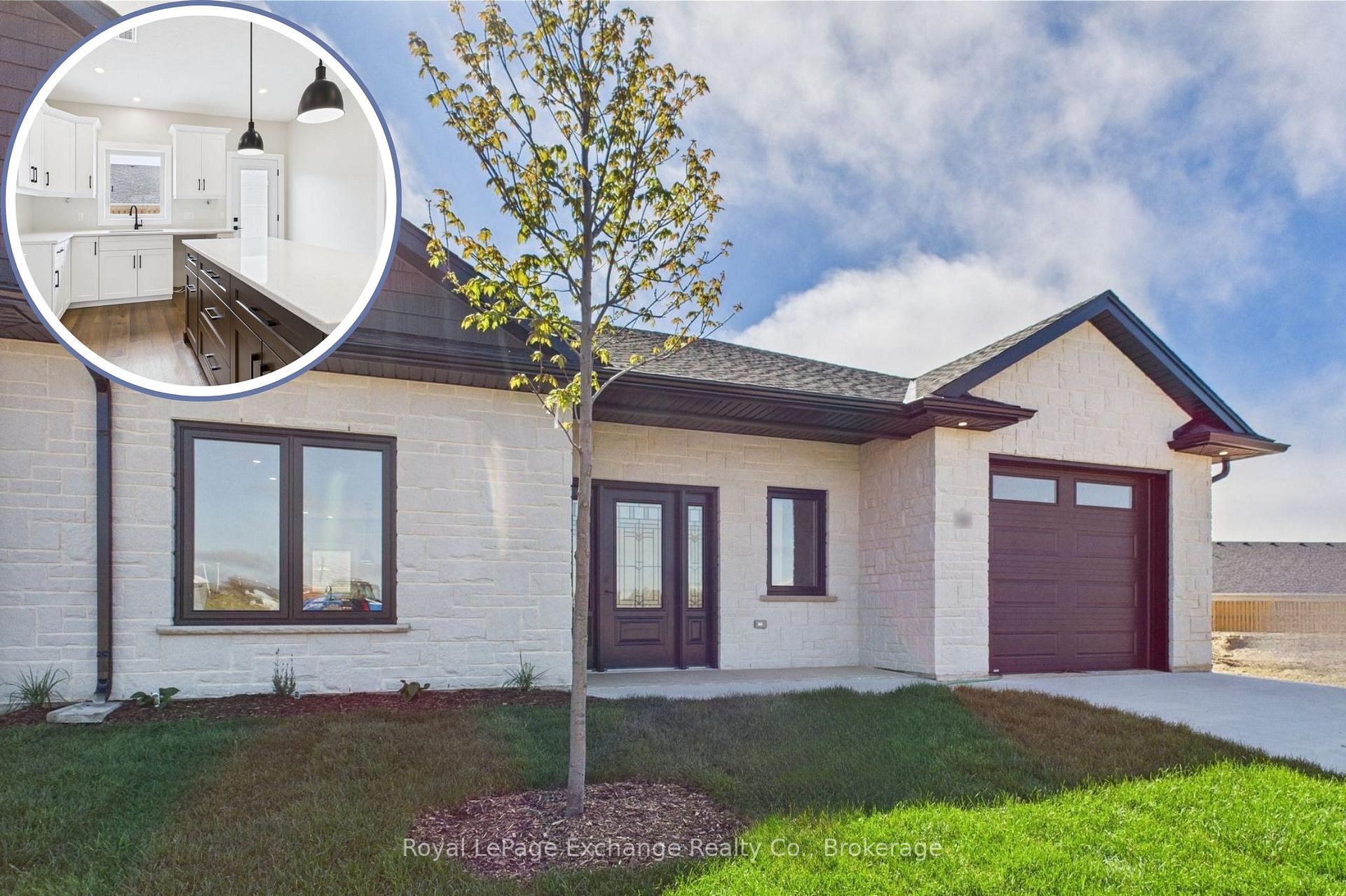 Embrace the lifestyle of modern living in this stunning bungalow 2 bedroom 2 bath townhome, end unit with almost 1400 sq.ft. of living space being offered by Camden Estates. The exterior features a striking combination of stone and black accents that stands out in any neighbourhood. An open concept layout adorned with luxury vinyl flooring throughout. The main living area is thoughtfully illuminated with pot lights. A beautiful tray ceiling in the livingroom adds a touch of refinement, enhancing the spacious feel of the 9' ceiling throughout. At the heart of this bungalow is a designer kitchen featuring a large island, coordinated pendant lighting and quality cabinetry. In addition the kitchen features a pantry and a convenient walkout to a west facing private patio, providing the perfect setting for outdoor dining or relaxation. The Primary suite is a luxurious retreat complete with a walk-in closet and stylish 3 pc bath with beautiful black accents. The second bedroom is amply sized with a double closet and a large window for natural light. A beautifully designed 4 pc bath serves as a perfect complement, ensuring that guests have ample space to unwind. As a Vacant Land Condo you get the best of both worlds -- you own your own home and the land. Enjoying lower condo fees - pay only for shared spaces like road maintenance and garbage and snow removal. This luxurious slab on grade townhome offers not only a beautifully designed interior but also an enviable location. This design is also available as a pre-construction unit with a full basement please inquire for pricing.