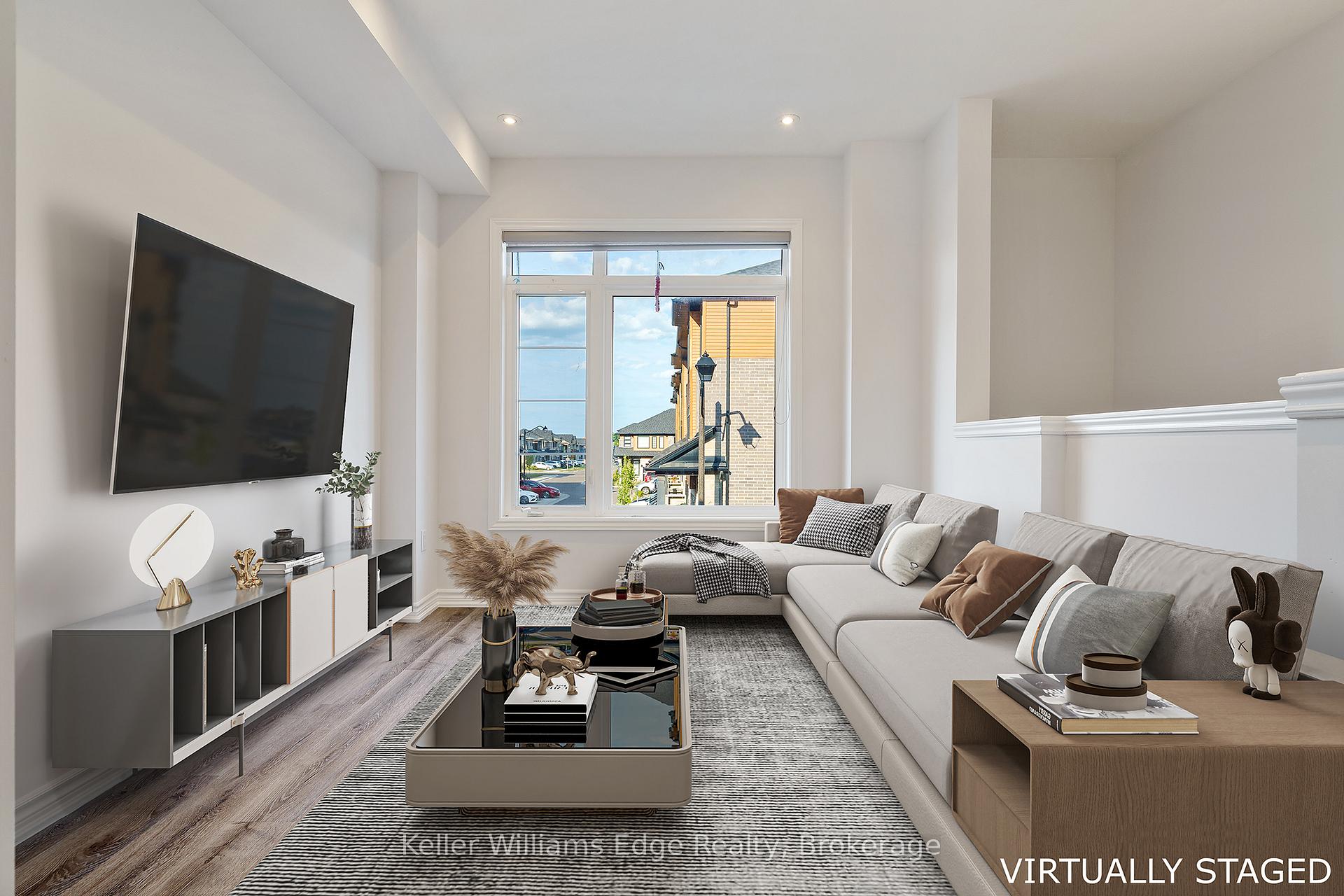 Welcome to Your Dream Home in West Brant! Step into this stunning and spacious 3-bedroom plus den home, built by the renowned Losani Homes, in the highly sought-after West Brant community. This unique and larger unit offers 1,507 square feet of refined living space, plus an additional 91 square feet of private outdoor retreats, providing more room than many comparable homes in the area. The second floor features an elegant, sun-drenched living area with soaring 9-foot ceilings, gleaming hardwood floors, and stylishly upgraded floor tiles. The chef-inspired kitchen is a true highlight, boasting upgraded cabinetry, sleek quartz countertops, and an abundance of storage perfect for both everyday living and entertaining. Retreat to the luxurious primary bedroom, which features an upgraded private ensuite bathroom premium feature not found in standard models. A large walk-in closet provides ample storage, completing your private sanctuary. The home's versatility shines on the ground level, which includes a separate walkout to a private backyard. This finished space is ideal for a home office, a cozy den, or a fourth bedroom, offering flexibility to suit your lifestyle. Enjoy your morning coffee on the second-level wood deck or step outside from the ground floor to create your own personal green space in the backyard. Conveniently located just minutes from top schools, shopping centers, parks, and all amenities, this home is the perfect blend of luxury, comfort, and convenience. Don't miss your chance to own this exceptional and upgraded home in a vibrant, family-friendly neighborhood.