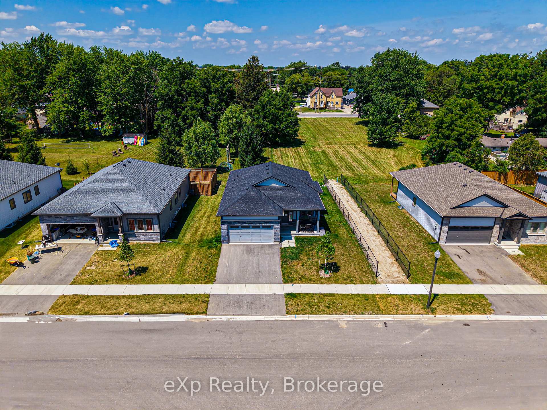 Welcome to 142 Ellen Street in charming Atwood. This beautifully maintained bungalow offers the perfect blend of modern finishes, open-concept living, and small-town tranquility, just minutes from Listowel and an easy commute to Kitchener-Waterloo. Step inside to a bright, spacious main floor featuring hardwood flooring, large windows, and a seamless flow between the kitchen, dining, and living areas. The kitchen boasts crisp white cabinetry, stainless steel appliances, granite countertops, and a generous island that is perfect for entertaining or casual family meals. The primary suite offers a peaceful retreat with a private ensuite featuring dual sinks and a walk-in shower. Additional bedrooms are well-sized and versatile, ideal for family, guests, or a home office. The large basement provides endless possibilities for customization, with large windows allowing for plenty of natural light. Enjoy the outdoors with a deep backyard, perfect for gardening or play. The property backs onto open green space, offering added privacy and scenic views. With an attached double garage, ample driveway parking, and move-in-ready condition, this home is perfect for families, downsizers, or anyone looking for peaceful living without sacrificing convenience.