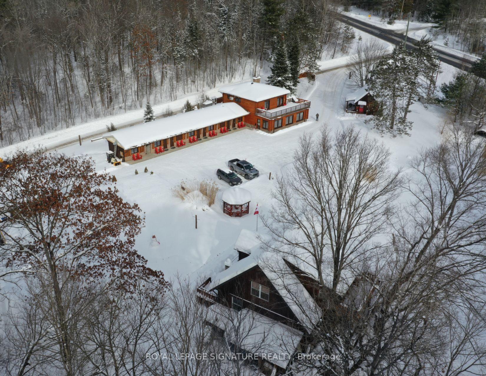 Turnkey Investment **7 ROOMS + 2 CABINS + LOFT + CLUBHOUSE + GREENHOUSE** Welcome to The Highlands Motel and Lodge, an exceptional investment opportunity that beautifully blends tranquility and adventure, attracting a diverse range of guests. Established revenue stream with an annual revenue of $200,000, this thriving hospitality business offers immediate cash flow with generations of return guests, making it a sound investment from day one. Situated on nearly 4 acres, additional cabins, hot tub, pool could provide significant opportunities to enhance the guest experience and increase revenue. This property is carefully landscaped and designed with quality finishes, German engineered doors and windows making it turnkey to operate and maintain, making it an attractive choice for both new and experienced investors. Just a short drive to Minden, Haliburton, the renowned Haliburton School of Art and Design, Sir Sam's Ski and Ride and endless outdoor parks and attractions make this property ideally located for guests seeking cultural experiences and year round outdoor adventures. The lodge offers breathtaking views of the surrounding nature, steps to 12 Mile Lake and boat launch, appealing to guests looking for a traditional Canadian getaway. The clean, comfortable rooms are designed to provide a relaxing atmosphere after a day of exploration. The combination of rooms, cabins, and a clubhouse caters to various guest demographics, from families to couples, increasing occupancy rates throughout the year. This is a rare opportunity to invest in a premier hospitality destination with established revenue, significant growth potential, and a prime location. Fully stocked and maintained for a smooth transition. Adventure. It's in our nature.