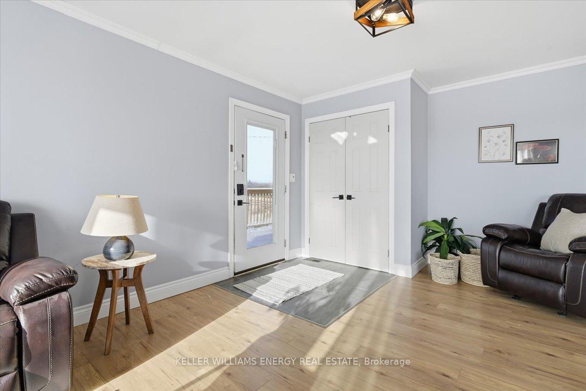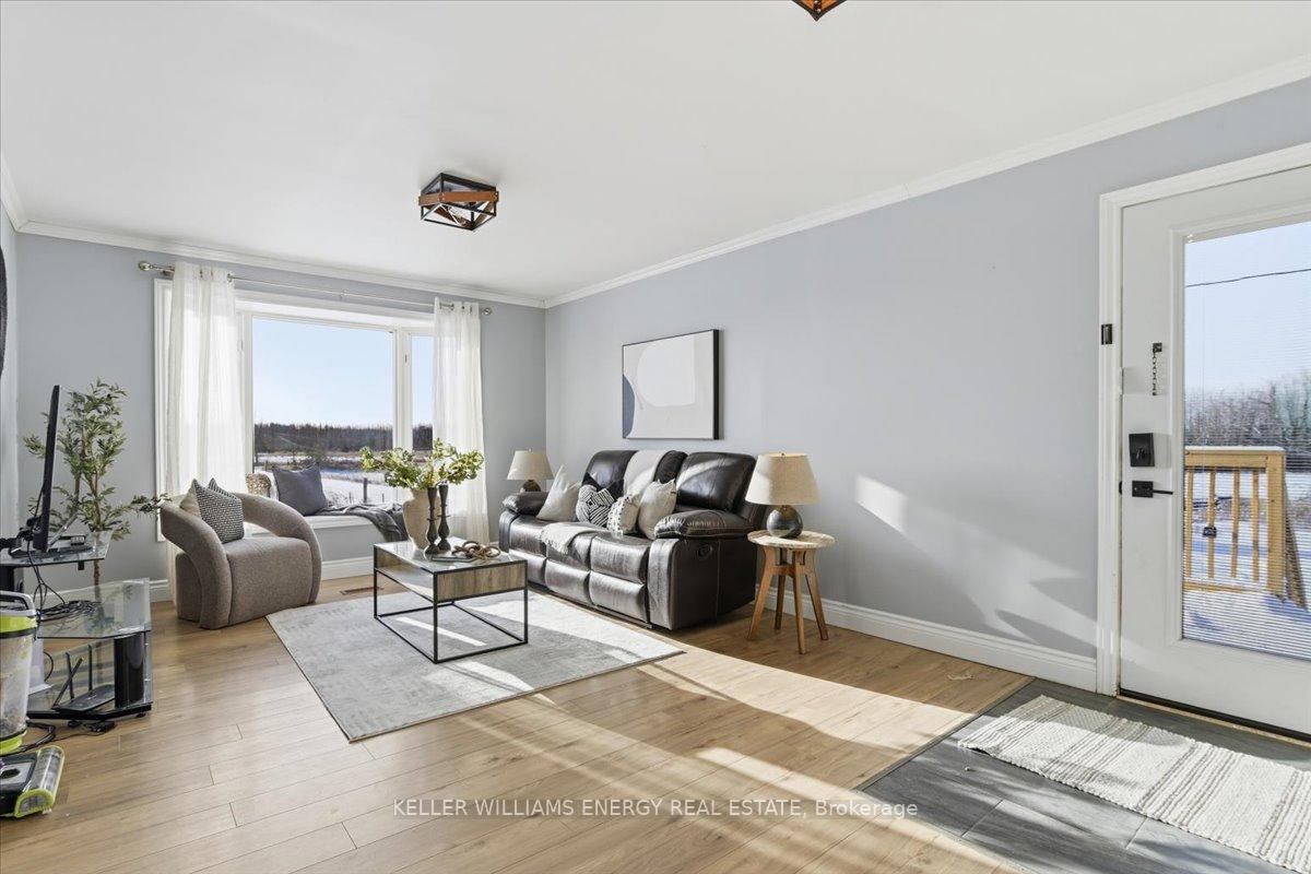 Welcome to your private escape, 177 acres of rolling rural beauty wrapped around a fully renovated, move in ready raised bungalow. The approach sets the tone: a sprawling new 32 foot front deck invites you to slow down, breathe in the countryside, and enjoy the views before you even step inside. The main floor is bright and airy, featuring engineered hardwood throughout with no carpet in sight and accented by stunning exposed beams that add character and warmth. Sunlight pours through the many windows, illuminating the open concept living and dining areas. The kitchen is an absolute standout, offering fresh white countertops, a classic subway tile backsplash, stainless steel appliances, a gas stove, and plenty of cupboard space for all your culinary ambitions. From the dining room, walk out to the backyard deck and take in the sweeping landscape that surrounds you. Two comfortable bedrooms and a stylish 4 piece bathroom complete the main level. Downstairs, the finished basement features modern vinyl flooring and a cozy rec room that offers the perfect spot for relaxing evenings. You will also find two additional bedrooms and a convenient 3-piece bath, making the lower level ideal for guests, teens, or comfy movie nights. Whether you are you're dreaming of hobby farming, privacy, or simply room to roam, this remarkable property offers peaceful living and true rural serenity. With three road frontages and an unbeatable location just 30 minutes from Lindsay and 30 minutes to Orillia, it is the perfect place to settle in, slow down, and enjoy the quiet countryside lifestyle.