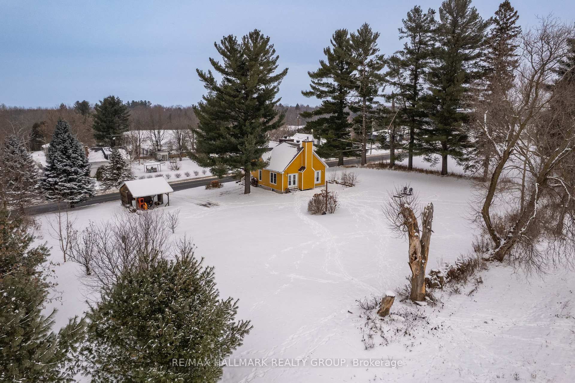 This charming warm and inviting home, thoughtfully renovated in 2014. Sitting on just under one acre of land, this property is perfect for anyone looking to escape the city and enjoy peaceful country living. Step inside and fall in love with the spacious open-concept living and dining area, highlighted by beautiful cathedral ceilings and exposed ceiling beams that bring warmth and character. This inviting space is filled with natural light thanks to Large windows and two French doors leading out to the backyard.The country-style kitchen features a large wood butcher-block island and a beautiful farmhouse sink, creating the perfect blend of charm, function, and style - ideal for cooking, entertaining, and everyday living.The main level also includes a bedroom, powder room and a laundry room for added convenience, while the second floor offers two additional bedrooms and full bathroom giving everyone space and privacy. The home also features two wood-burning stoves for cozy, efficient heat during the colder months. Unfinished Full basement gives plenty of space for storage or potential family room/ play room. If you're searching for charm, comfort, and the tranquility of the countryside, this property truly has it all.