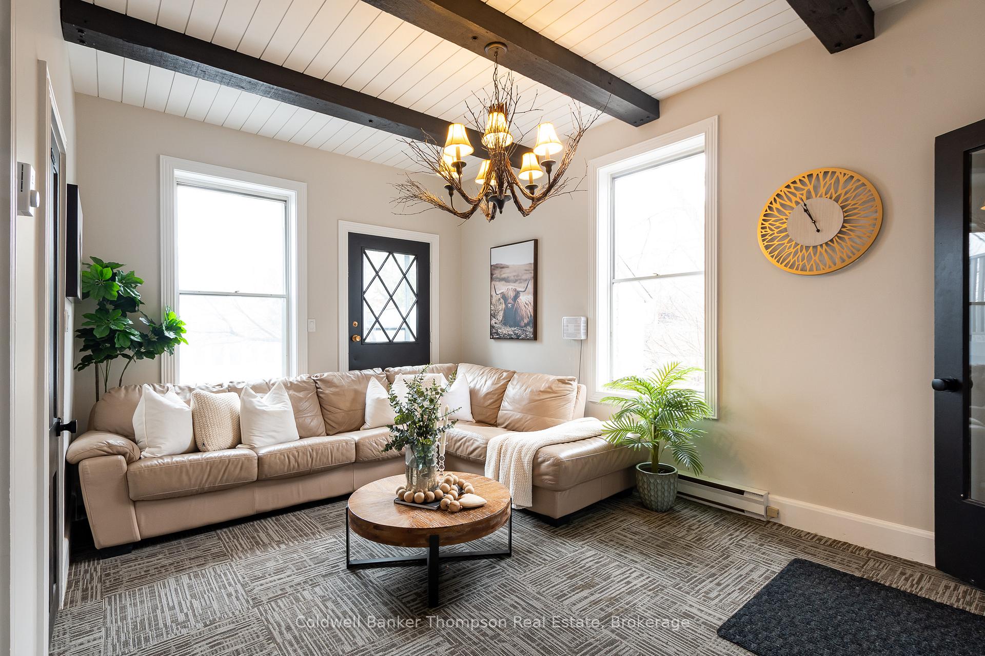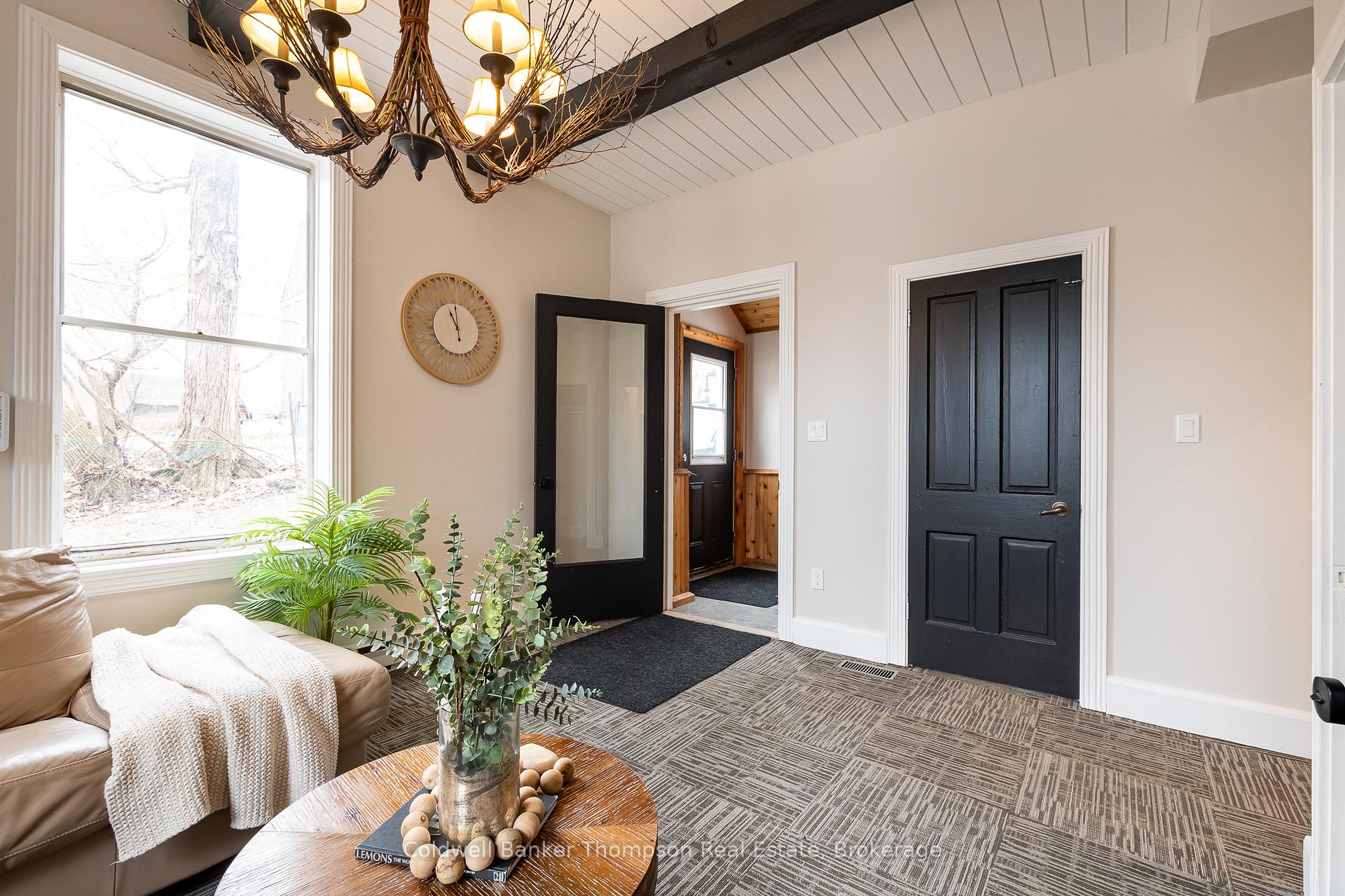 Step into a truly incredible renovation with this beautifully restored 1890 property, offering a perfect blend of historic charm & modern functionality in the heart of downtown Huntsville. The main floor currently features multiple office spaces, a welcoming communal foyer, a kitchenette, a meeting room, & a stylish 2-pc powder room. Move your business here, lease the offices individually, or reimagine the space for residential use possibilities are endless. A separate entrance leads to the 2nd & 3rd floors, where the residential space truly shines. An impressive grand staircase with wainscotted walls sets the tone, leading to a stunning apartment with thoughtful design details. The 2nd floor offers a beautiful primary bedroom with its own private deck & 3-pc ensuite, an additional guest bedroom, & a luxurious 5-pc bathroom that includes laundry facilities. The spacious living room with its charming bow window overlooks the rear yard & downtown skyline, providing a cozy, light-filled retreat. The eat-in kitchen is a showstopper, featuring dual-toned cabinetry, a rustic brick backsplash, & stainless steel appliances. The 3rd floor offers a cozy, character-filled attic space, complete with a study area with convenient built-ins, a 3rd bedroom, & another 3-pc ensuite perfect for guests, tenants, or additional living space. This property also boasts 2 independent heating systems: a new radiant heating system for the 2nd & 3rd floors & a forced air natural gas furnace for the main floor. All electrical has been updated, & the roof was replaced in 2019. Outside, you'll find a circular driveway, ample parking, a rear yard with a fire pit, & an unbeatable location within walking distance to River Mill Park, the town docks, restaurants, shops, the Algonquin Theatre, & more. Whether you're looking for a live-work opportunity, an income property, or a place to create your dream downtown residence, this property is bursting with potential.