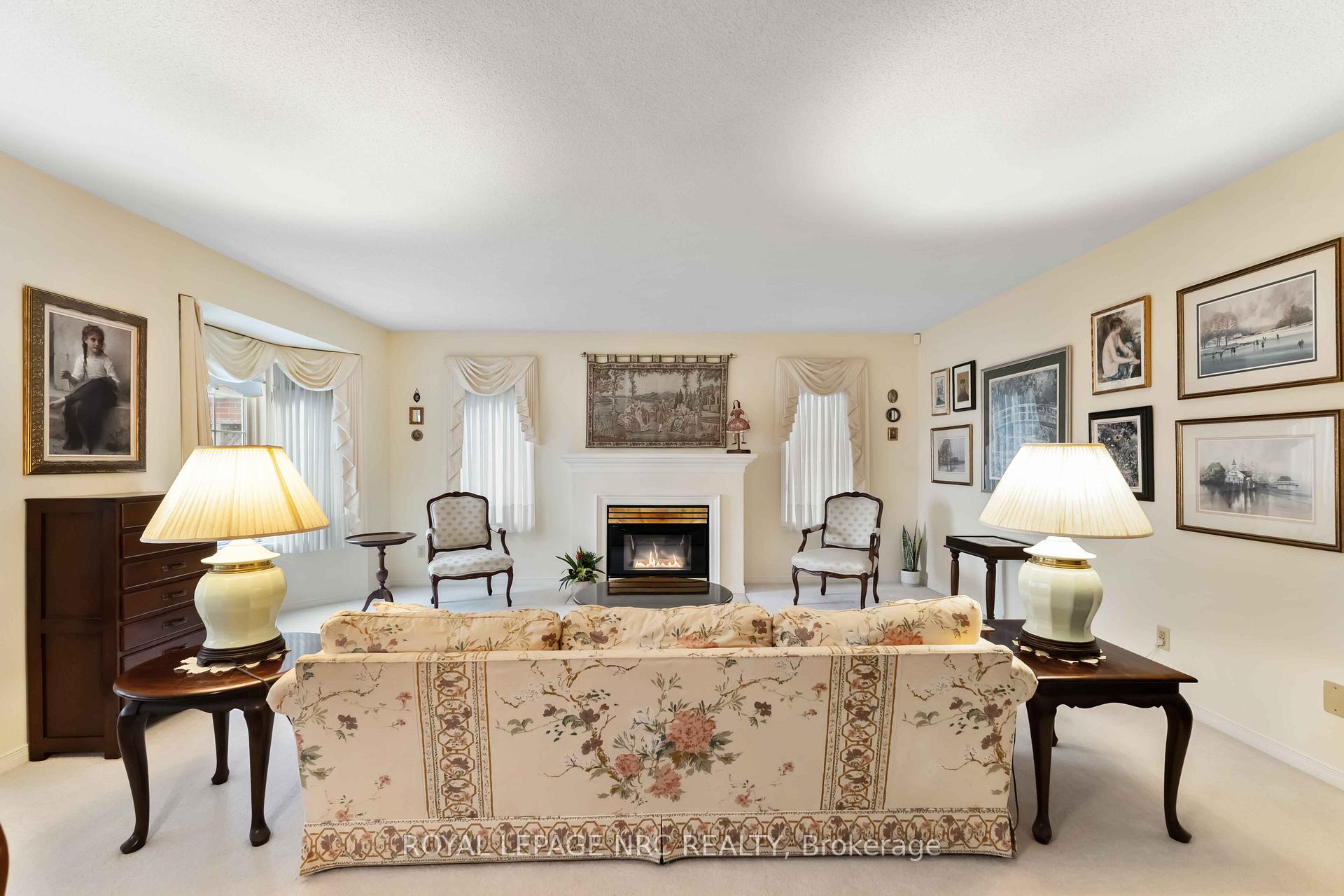 Backing onto a peach tree orchard with stunning western escarpment views, this freehold bungalow with linked garage in Heritage Village offers a rare blend of privacy, comfort and wine-country lifestyle. The home enjoys a peaceful setting in a sought-after location close to award-winning wineries, conservation areas and scenic walking trails. With over 1500 sq ft on the main floor plus a finished basement, this inviting bungalow features 2 spacious bedrooms, 2.5 bathrooms with a bright, welcoming flow designed for easy everyday living. The heart of the home is the spacious country kitchen offering abundant cabinetry, California shutters and a generous dining area - perfect for lingering over morning coffee while taking in the orchard views. Sliding doors lead to a lockstone patio, ideal for summer enjoyment, relaxing surrounded by nature. The sun-filled living room showcases a cozy gas fireplace and an abundance of natural light. The main floor primary bedroom is a true retreat with plenty of room for a king-size bed, a generous walk-in closet and a private ensuite bathroom. The second bedroom is also impressively sized with great closet space and convenient access to the adjacent four-piece bathroom. Additional features include main floor laundry plus direct entry to the attached single car garage. The garage also has access to the backyard, making it easy to bring out the lawnmower and gardening tools - plus the extra-long driveway provides parking for up to three other vehicles. Downstairs, enjoy a large, finished recreation space, 2-piece powder room, handy workshop area with wall mounted storage for tools and supplies plus lots of extra closet space. Ownership in Heritage Village includes exclusive Clubhouse privileges ($70. p/month) with heated saltwater indoor pool, gym, wet & dry saunas, craft room, woodworking shop and a full calendar of activities and events. A rare chance to enjoy Niagara's best lifestyle - right from your own backyard!