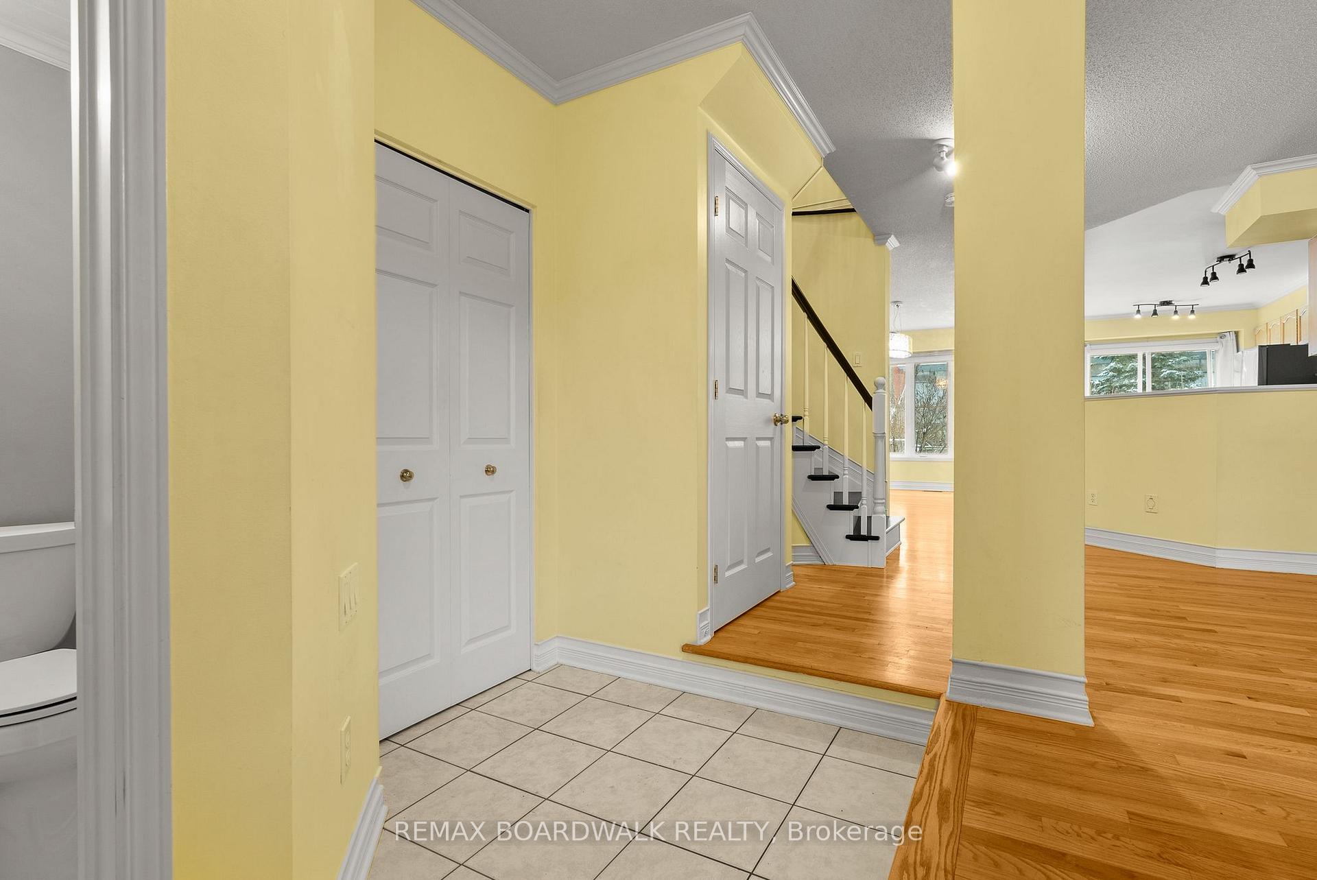 Lovely townhome situated on a quiet crescent surrounded by young families. This well-maintained property backs onto the park and recreation area of the St. Laurent Complex with no rear neighbours and full southern exposure. Enjoy direct access to green space and community amenities including a pool, library, skating rink, gyms, and more. Pride of ownership shows throughout. The original owners made thoughtful modifications at construction, adding extra space to the dining and kitchen areas. Hardwood flooring runs throughout the main and upper levels. The main bathroom features a beautiful skylight, bringing in plenty of natural light. Step outside to a private, low-maintenance backyard with lovely landscaping and open views - the perfect spot to relax or entertain. The unfinished basement is framed and ready to be completed as a future family room. A bright, cheerful home in a great community close to parks, schools, and transit.