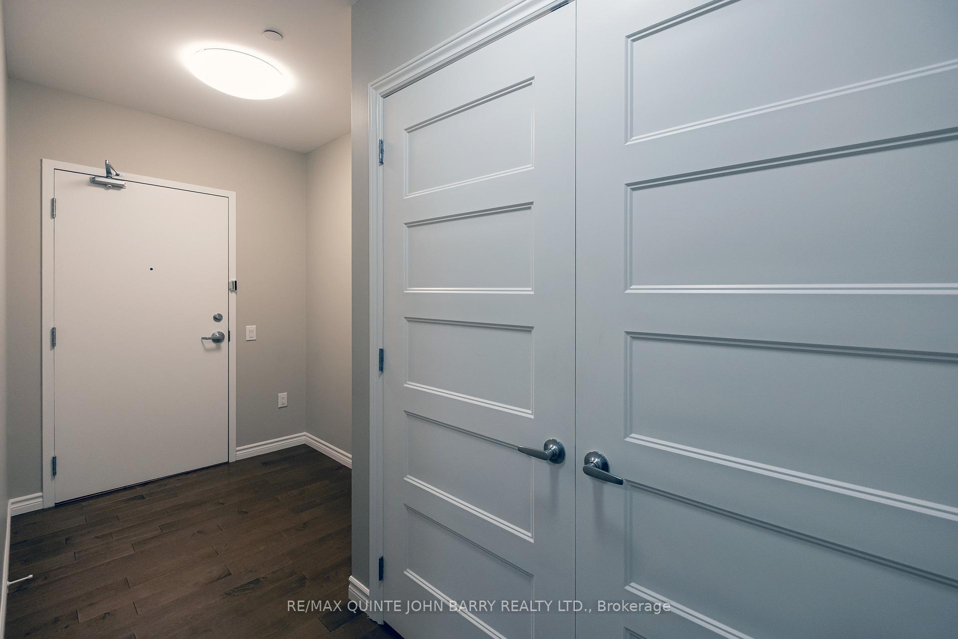 Experience the best of Belleville living in this stunning 4th-floor condo, perfectly situated in the heart of downtown and just steps from all amenities, including fine dining right across the street. This contemporary condo offers underground parking, secure building access, a café on the main floor, and a stylish wine bar for relaxing evenings. Stay active with the building's 24/7 fitness centre, all conveniently located at your doorstep. Step inside to a generous foyer with a large coat closet and a separate full-size laundry/storage area. The open-concept kitchen, dining, and living space is ideal for entertaining or everyday living, featuring an exceptionally large pantry, quartz countertops, ample cabinetry, and a beautiful backsplash. Stainless steel appliances are included: a plumbed-in fridge, stove, dishwasher, and microwave. From the living room, enjoy access to your own private balcony. The primary bedroom offers a walk-through closet leading to a luxurious 5-piece ensuite with double sinks, a tub, and a stand-alone shower. The secondary bedroom features a semi-ensuite to the 3-piece main bath. Residents can also enjoy the spacious common area for family gatherings, including a large shared room with a fridge, bathroom, and a balcony perfect for BBQs. Modern, convenient, and full of charm, this condo truly has it all!