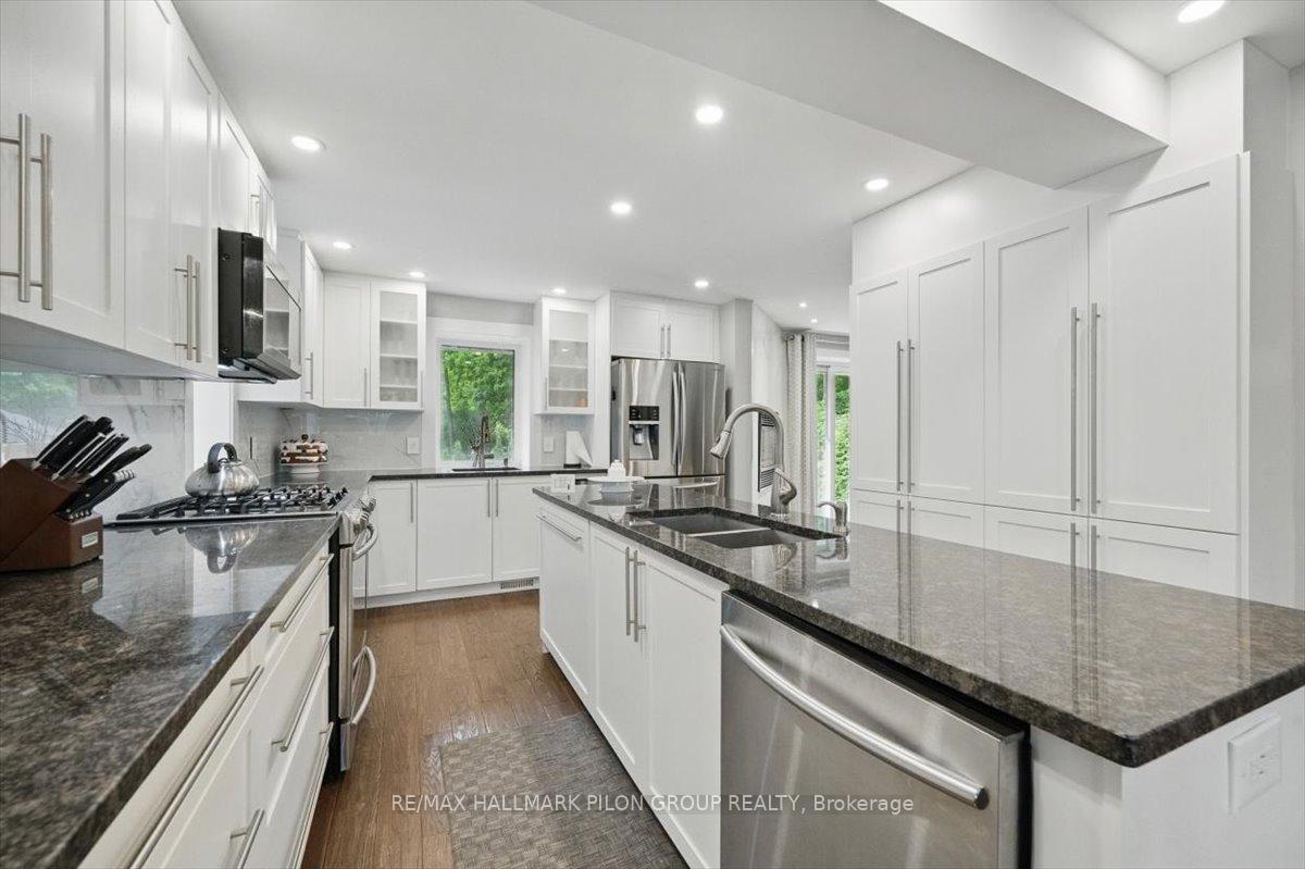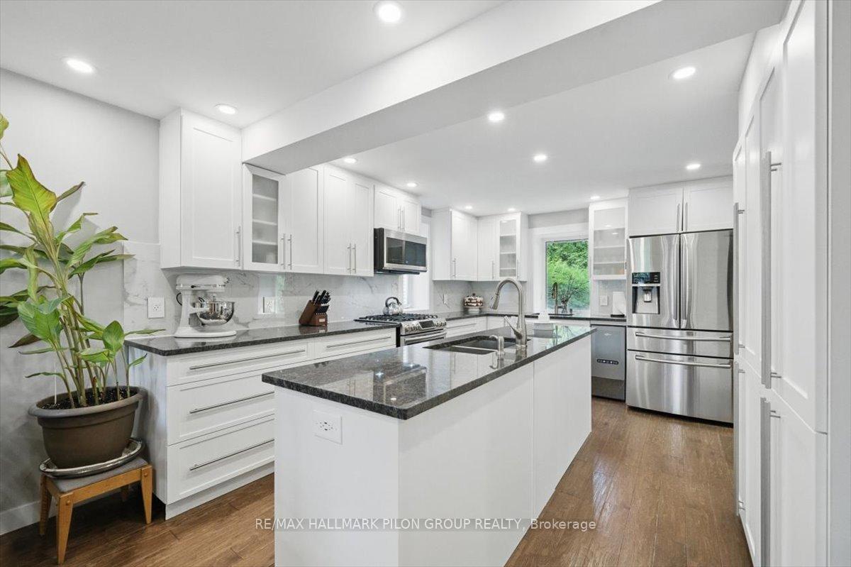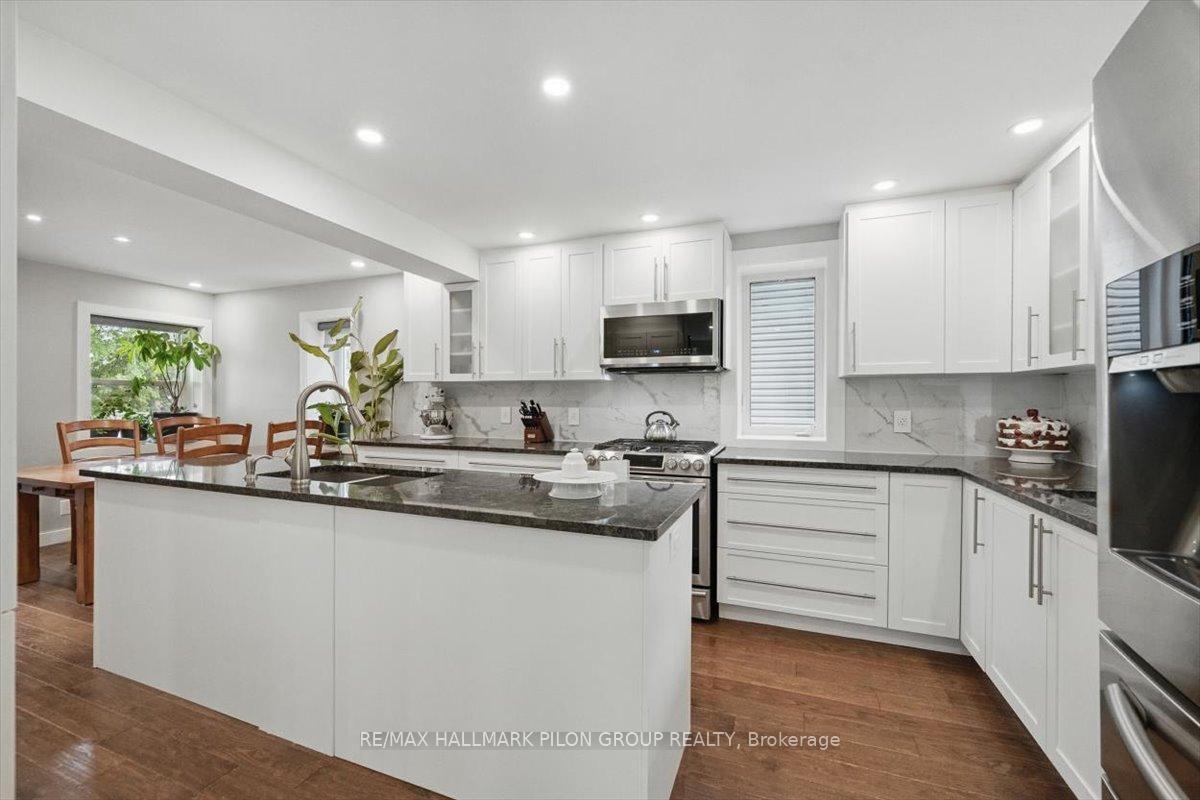 Designed with comfort & modern living in mind, this home offers a perfect blend of style, functionality and rich local history. Originally part of early military infrastructure, this remarkable property is also recognized as one of the original homes of Blackburn Hamlet-and among the oldest still standing-offering a rare opportunity to own a truly distinctive piece of the community's heritage.The kitchen is a true showstopper, fully renovated with oversized island featuring double prep sink, granite counters, marble backsplash, pots & pans drawers, ample cabinetry, built-in wine fridge, gas range, & SS appliances. A 2nd sink is perfectly positioned overlooking the backyard, adding both charm & practicality. The kitchen flows seamlessly into the dining area & a cozy LR anchored by a beautiful gas fireplace. A striking wood staircase w/ glass railing & lighted steps leads to the upper lvl, where you'll find the serene primary bedroom w/ WIC & updated ensuite. 3 additional bedrooms & fully renovated bathroom complete the 2nd floor.The LL offers flexibility with welcoming family rm featuring wet bar, large foyer, den that could easily become a 5th bedroom, full bath, & spacious laundry/utility rm with ample storage. W/ separate electrical panel in place & separate entrance, this lvl offers great potential.Outside, enjoy the fenced backyard w/ no neighbours on one side, offering added privacy. Entertain or unwind under the gazebo, soak in the hot tub, & enjoy the convenience of a natural gas BBQ hookup.Renovated in 2018 with attention to detail throughout, this home also features R60 attic insulation and foam insulation in the main floor exterior walls for energy efficiency. Additional upgrades include a 200 amp electrical service, generator wiring, Nest Protect system, & newer furnace, heat pump, A/C, & hot water tank, all installed in 2018. This home is carpet-free, move-in ready, & packed w/ potential. A rare find in a quiet, family-friendly community.