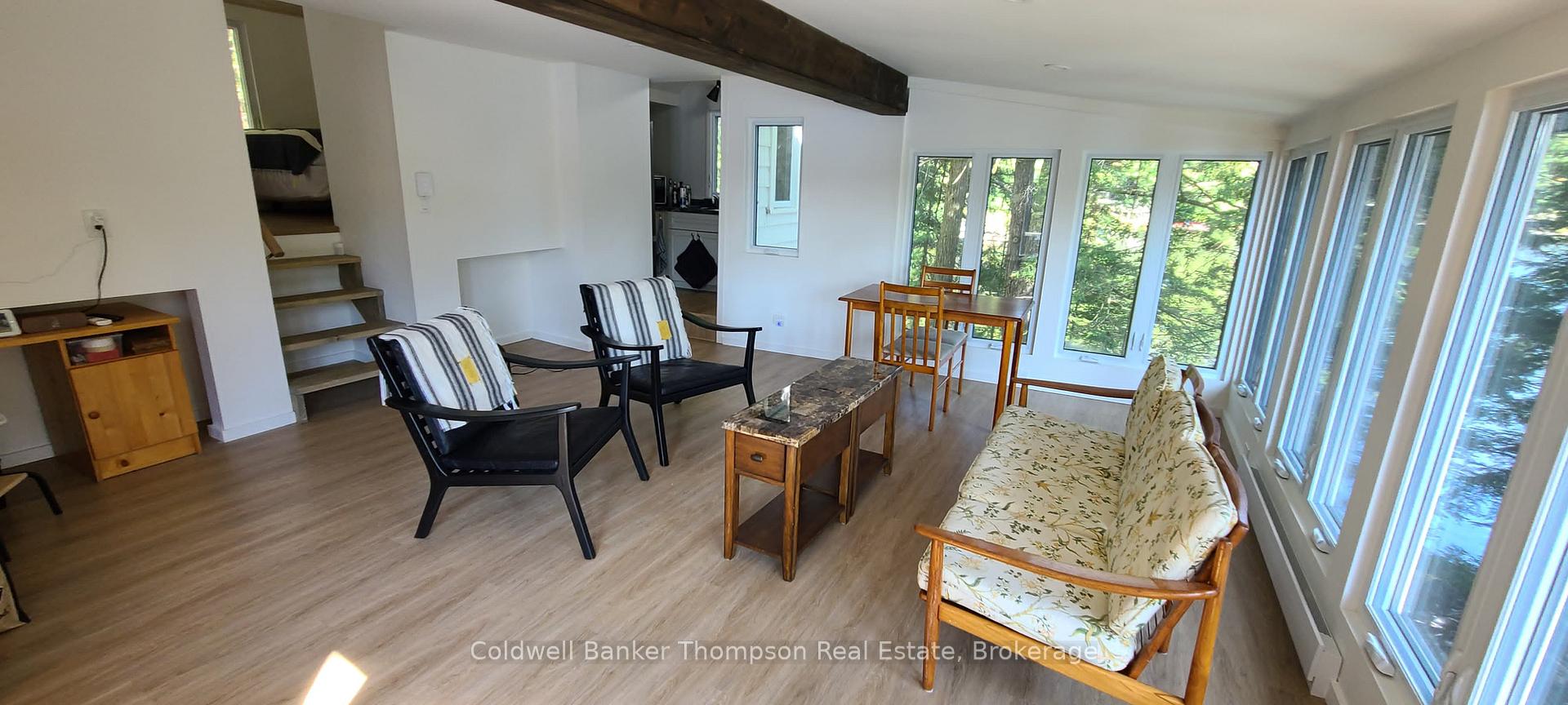 Spend your summer and fall on your very own private island on the Muskoka River, available for lease from spring through the end of October. This peaceful, fully furnished seasonal retreat is perfect for those looking to slow down and soak up the beauty of cottage country. The cottage features one spacious bedroom with two double sized beds, a 3-piece washroom with a composting toilet, and a newly upgraded grey water pit. The cozy kitchen is equipped with two induction hot plates, a small countertop oven, and a fridge ideal for preparing easy, relaxed meals throughout your stay. The main living area is generously sized and bright, with multiple windows bringing in natural light and offering lovely views of the surrounding river. Step outside to a sunny, south-facing dock perfect for swimming, launching a boat, or enjoying a quiet moment by the water. A BBQ on the deck makes it easy to enjoy casual outdoor dining.The property has seen numerous thoughtful upgrades over the past few years, including a new roof, new electrical panel, updated lighting fixtures, electric baseboard heaters (Wi-Fi controlled), upgraded insulation where needed, and all-new walls, ceilings, and flooring. Freshly painted inside and out, the cottage is clean, comfortable, and move-in ready. Additional amenities include Apple TV, Wi-Fi, an alarm system, and a UV filtration system for water drawn from the river. Whether you're hoping to relax, explore, or work remotely in a peaceful setting, this unique getaway offers a rare chance to enjoy Muskoka at its finest. Lease price includes all utilities except hydro. Quiet, respectful tenants are invited to enjoy this special retreat until the cottage is closed up for the season at the end of October.