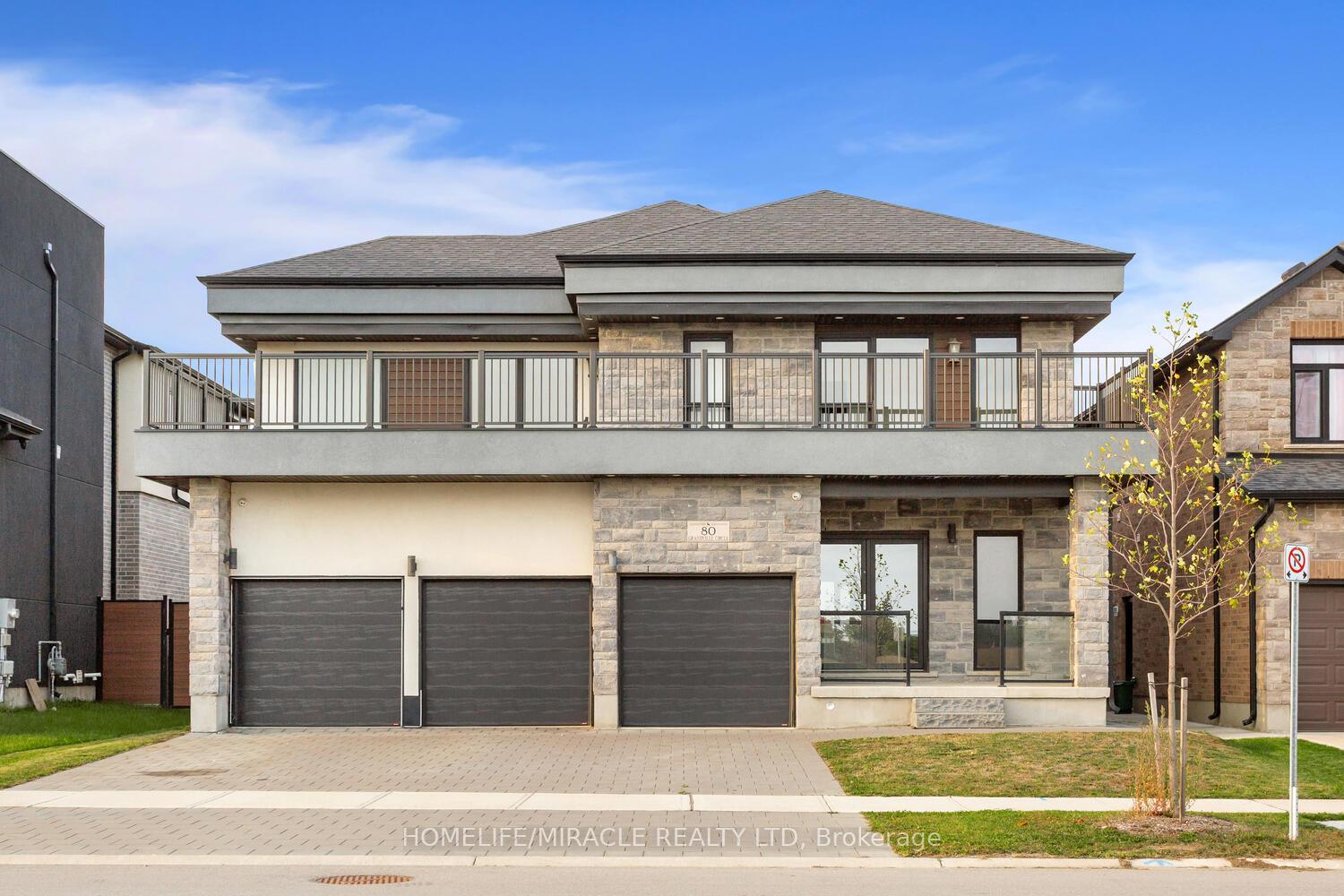 Welcome to 80 Grandville Circle, featuring the sought-after Taj - The Modern Model with an upgraded elevation that includes elegant partial stone detailing. This stunning 5-bedroom, 4-bathroom detached home offers a functional and spacious floor plan with approximately 3,720 sq. ft. of total living space, including the garage. The open-concept main floor showcases a chef's kitchen with upgraded cabinetry, sleek countertops, and brand new appliances including a fridge, cooktop, hood, built-in microwave oven, washer, and dryer. A rare main-floor bedroom with a full bath adds versatility for guests or multigenerational living. The inviting living room is anchored by a cozy fireplace slot and expansive windows that fill the space with natural light. Upstairs, the luxurious primary suite features a spa-inspired ensuite and access to a large balcony deck, perfect for morning coffee or evening relaxation. With a walk-out unfinished basement, 3-car garage, and a premium ravine lot (50.21 x 114.42 ft), this home combines style, comfort, and location in one exceptional package. Located in the heart of Paris, Brant, close to top-rated schools, parks, and shopping, this is a rare opportunity to own a true gem in a thriving community.