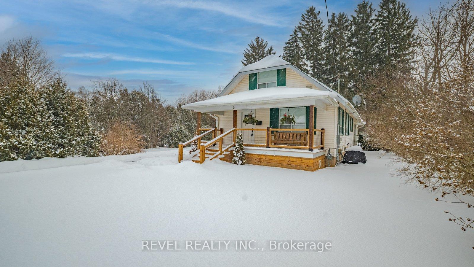 Welcome to 6 Decou Road, Simcoe - a charming and beautifully maintained 1.5-storey detached home set on a generous 0.34-acre lot offering privacy, mature surroundings, and exceptional outdoor space. This 2-bedroom, 2-bathroom home blends character and comfort with hardwood flooring throughout, a bright open-concept layout, and thoughtful updates. The main floor features a welcoming foyer, spacious living room, and an impressive open dining area with a large island, perfect for entertaining. The adjoining kitchen seamlessly flows into a cozy family room, highlighted by a gas fireplace, creating a warm and inviting atmosphere. The main-floor bedroom and full bath offer flexibility for guests or main-level living. Upstairs, the private primary retreat impresses with a walk-in closet, skylight, electric fireplace, and a 4-piece ensuite with convenient laundry, offering both comfort and functionality. Additional highlights include two fireplaces, central air, gas forced-air heating, and a full unfinished basement with additional laundry hookup and excellent storage potential. Outside, enjoy the expansive lot with landscaping, privacy features, a deck, awnings, and a detached garage with ample parking for up to 9 vehicles - ideal for hobbyists, families, or hosting guests. A shed provides extra outdoor storage. Located in a quiet yet convenient area close to schools, parks, shopping, a hospital, golf courses, trails, and public transit, this property offers the best of rural living with town amenities nearby.