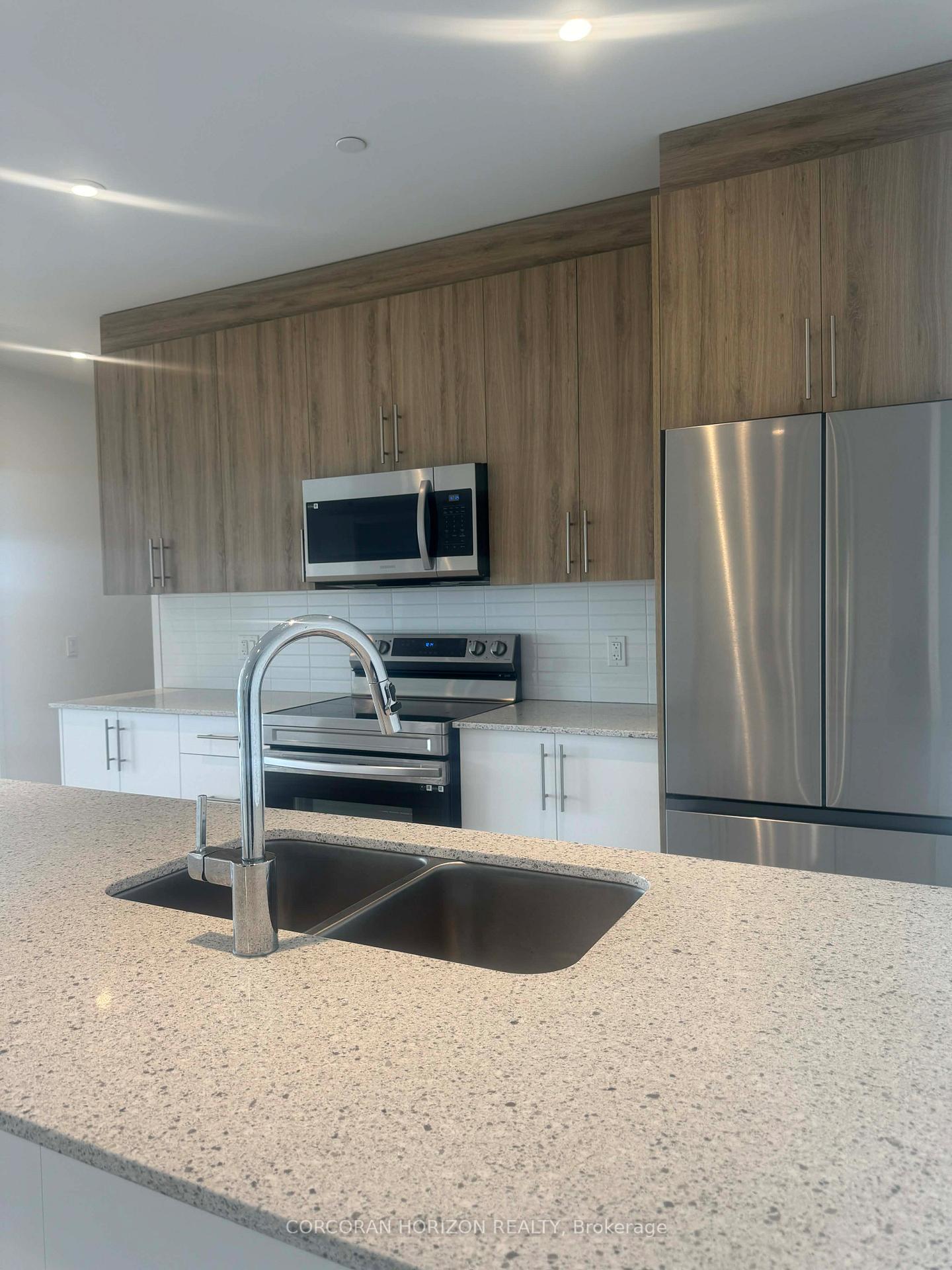 Experience elevated living in this beautifully appointed 2-bedroom, 2-bathroom condo set against the tranquil backdrop of Rainbow Lake. Situated on the 7th floor, Unit 703 offers breathtaking views and 1,055 square feet of thoughtfully designed contemporary space. The open concept layout effortlessly blends the kitchen, living, and dining areas, creating a bright, inviting setting ideal for both everyday living and entertaining. The modern kitchen is equipped with stainless steel appliances and ample cabinetry, making it as functional as it is stylish. Step out onto your private balcony to unwind and enjoy peaceful views of Rainbow Lake and the surrounding conservation lands. The primary bedroom features a generous walk-in closet and a sleek 3-piece ensuite, while the second bedroom offers abundant natural light and excellent storage. Residents of this highly sought-after community enjoy premium amenities, including a fitness centre, yoga studio with sauna, library, social lounge, party room, pet grooming station, and direct access to scenic walking trails around Rainbow Lake. Don't miss the opportunity to lease this exceptional condo in one of Kitchener's most desirable locations!