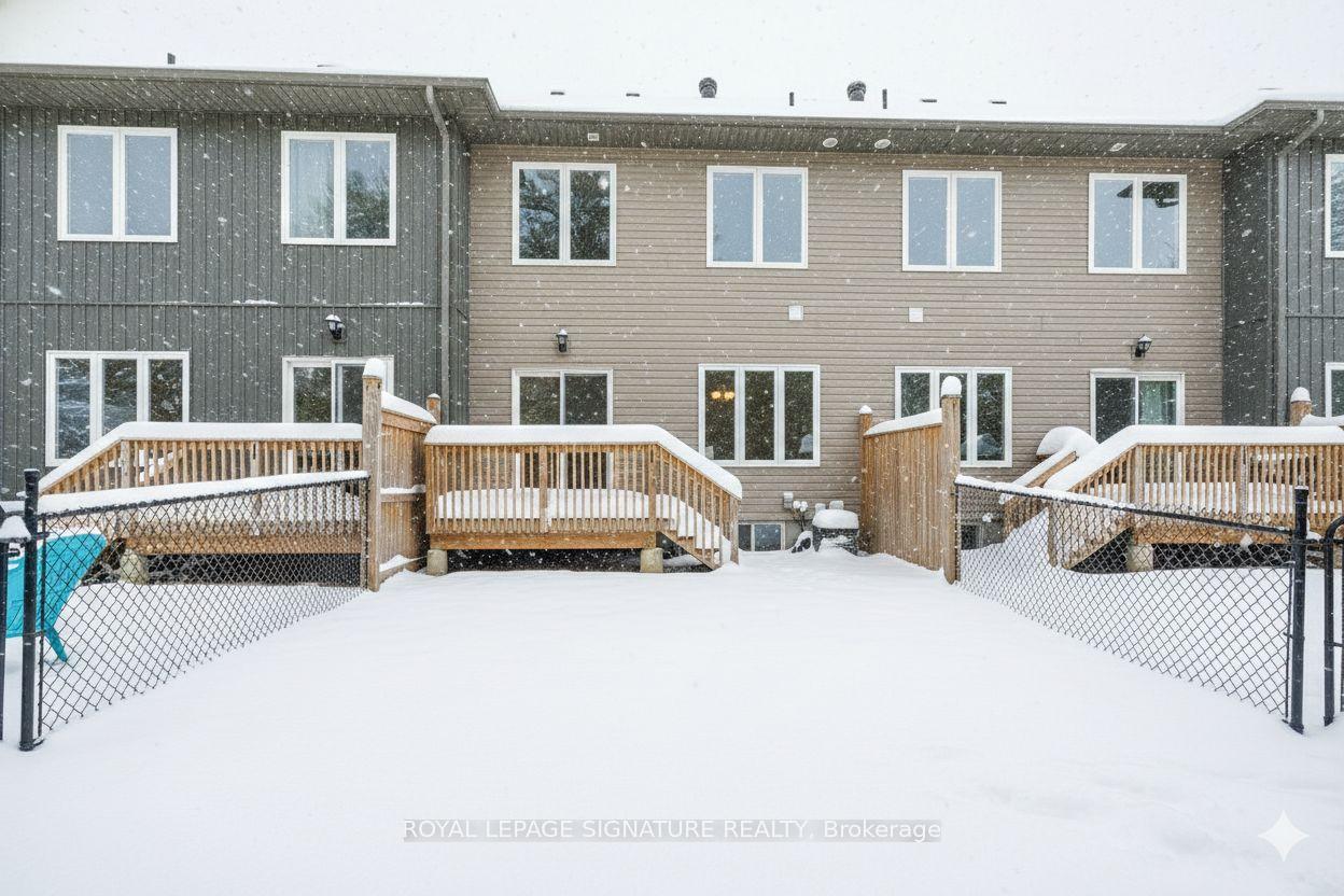 Muskoka Living in this maintenance free 3 bed, 3 bath townhome in the heart of MUSKOKA for only $529,900! Experience the perfect blend of comfort and convenience in this stunning townhome located just minutes from downtown Bracebridge. Granite Springs offers an exceptional lifestyle with outdoor adventures right at your doorstep. Step inside this bright, freshly painted unit to high end vinyl flooring and pot lights that enhance the home's bright and airy atmosphere. The spacious open concept living, dining area features a large island with additional storage and walk-out to the private backyard, perfect for relaxing evenings at home. Enjoy the convenience of upstairs laundry, making everyday chores a breeze. The primary bedroom features a large walk in closet, ensuite washroom with a walk in shower, double sink and modern soaker tub. A covered porch with a walkout deck and a gas BBQ outlet invites you to enjoy alfresco dining and entertaining in your private outdoor space. The clubhouse includes a pool table, party room, gym, library and outdoor recreation area overlooking the meticulously maintained gardens for additional entertainment space and social events in this family friendly community. This townhome is ready for you to move in and start enjoying life in this vibrant community. Explore breathtaking waterfalls, pristine beaches, scenic bike trails, and renowned golf courses. Enjoy boutique shopping and delightful dining options, all within a short drive. Don't miss your chance to own this beautiful townhome in Granite Springs, where nature and urban amenities