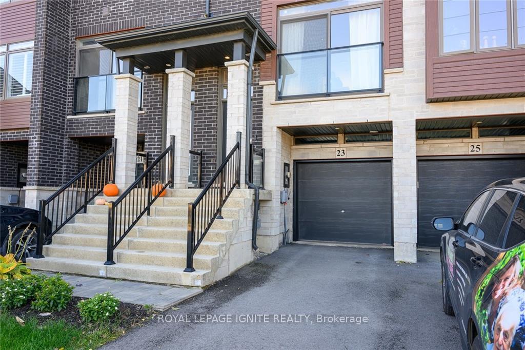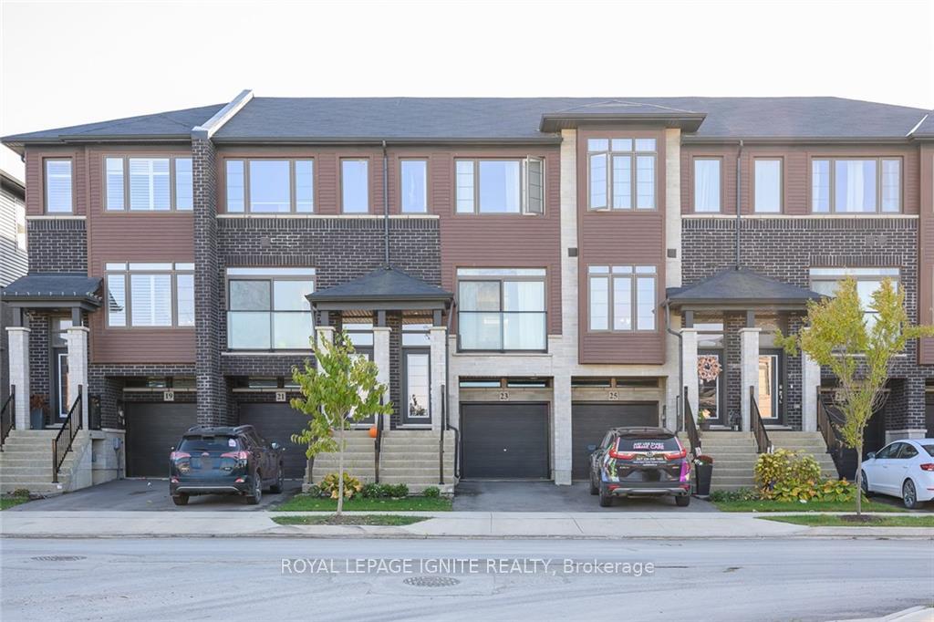 Welcome to 23 Soho Street, a stunning modern townhome available for lease in one of Upper Stoney Creek's most desirable communities. This 3-storey home offers approximately 1,230 square feet of stylish, functional living space, perfectly suited for young professionals or a growing family seeking a low-maintenance lifestyle. Featuring a bright, open-concept main living area highlighted by sleek dark flooring and large windows that flood the space with natural light. The contemporary kitchen is designed for both cooking and entertaining, with dark cabinetry, stainless steel appliances, and ample counter space that flows effortlessly into the living and dining areas. Step out onto the balcony for fresh air, or enjoy the private patio with a fenced backyard that's perfect for summer relaxation. The upper level features three spacious bedrooms and two full bathrooms, including an ensuite with the primary bedroom, offering a comfortable retreat for everyone in the household. With a single car garage plus driveway parking, you have convenient space for two vehicles. Located in a vibrant neighbourhood, you are just moments away from top-rated schools, parks, shopping, and restaurants as well as quick access to the Red Hill Valley Parkway and the LINC.Don't miss this!