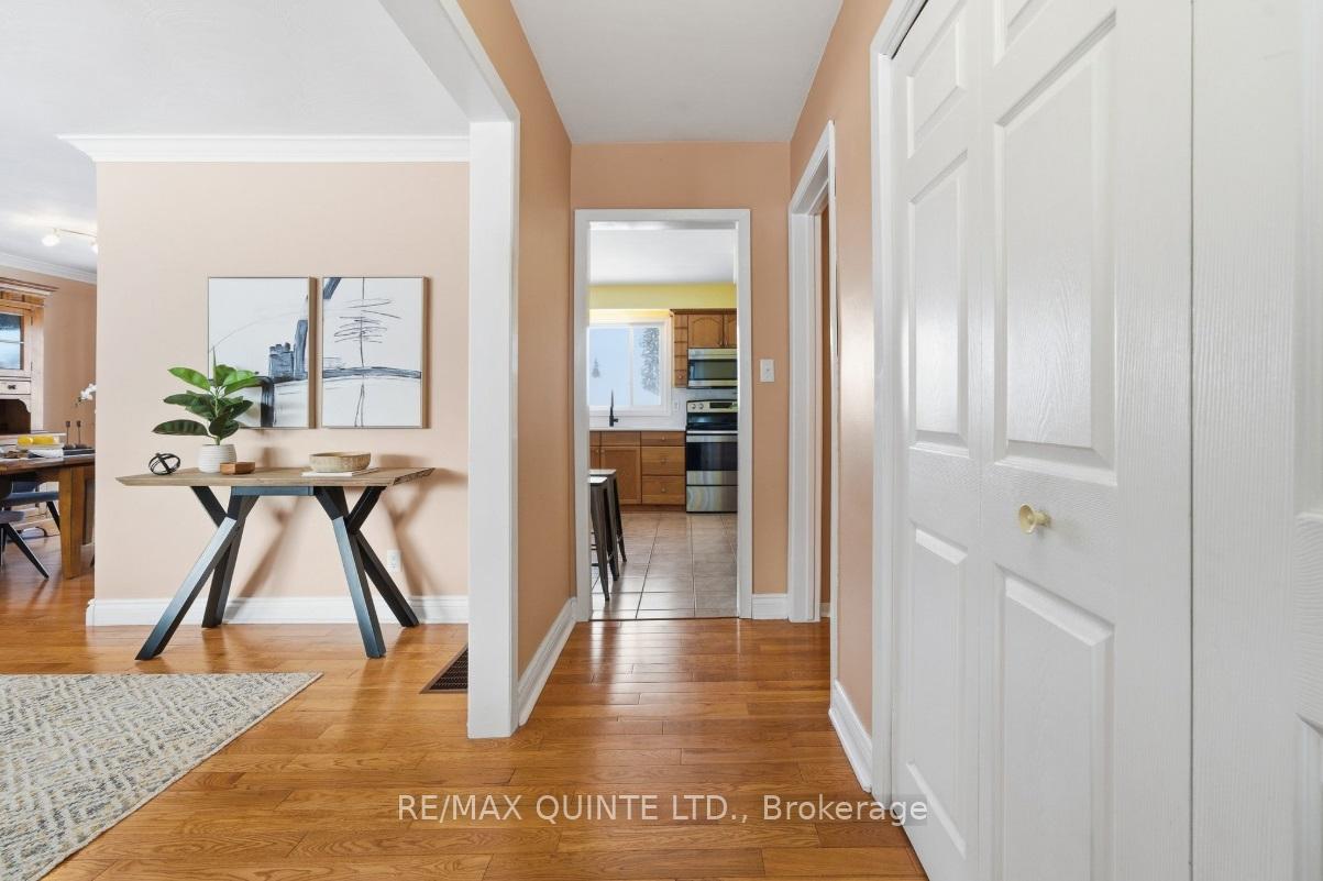 Beautifully maintained brick bungalow situated on over 1/2 acre. Located on a low traffic street central to both Trenton and Belleville with municpal water. Bright living room with gas fireplace, lovely hardwood floors through the main level, functional kitchen with quartz counter tops. Completing the main floor are 3 good sized bdrms and 4 pce bath. The lower level offers a spacious rec room, 4th bdrm, 3pce bath and plenty of storage space. The fenced rear yard with 16x32 inground pool means summer can't come soon enough! Recent updates include - main level windows 2021, gas furnace 2021, a/c 2017, roof 2018, water softener 2014, fence 2025 and septic pumped 2024.