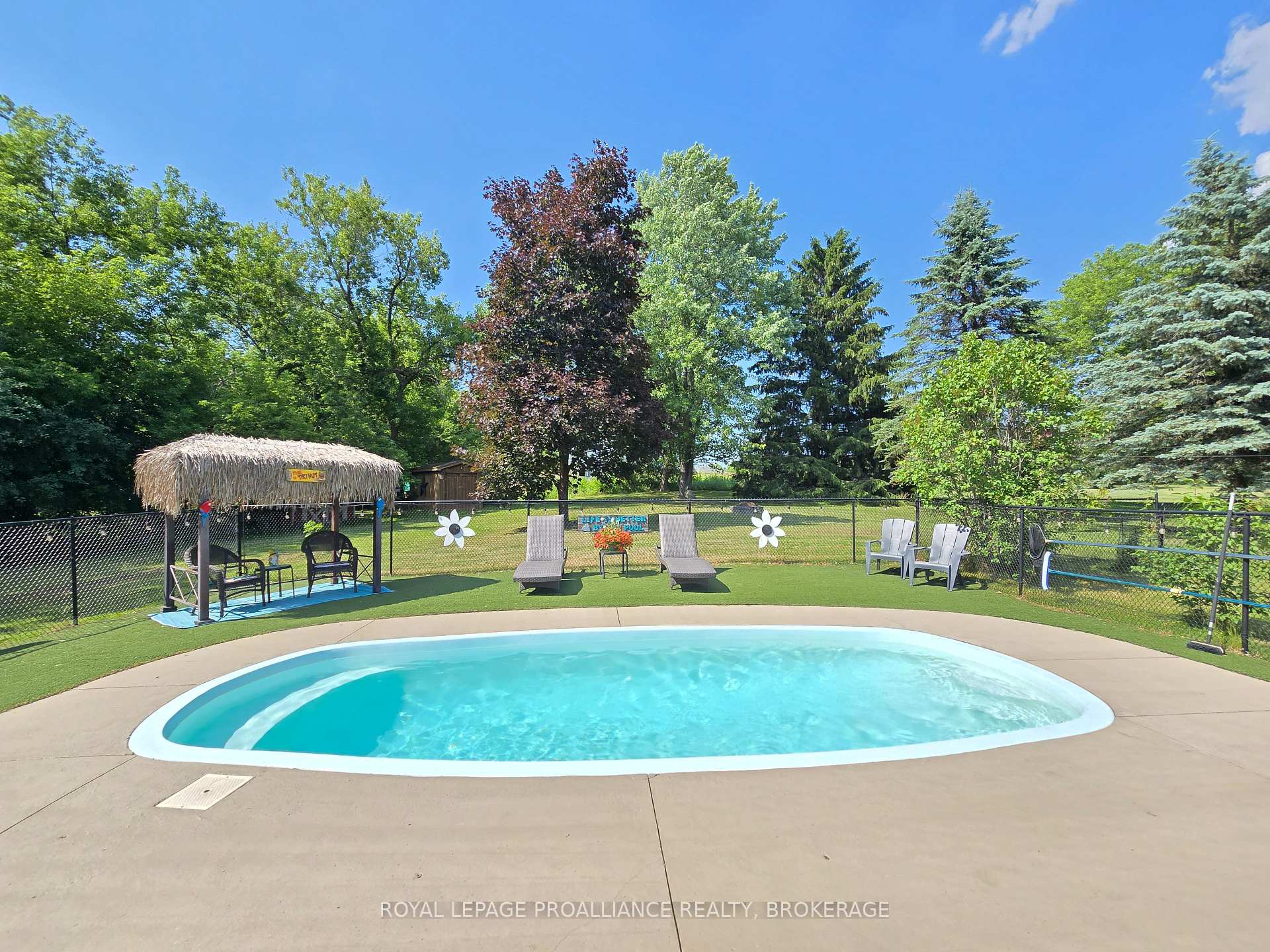 Forget the travel agent and prepare for a permanent staycation at 7379 County Rd 2. This stunning brick bungalow in Greater Napanee is a masterclass in pride of ownership, offering a seamless blend of sophisticated indoor living and a backyard that feels like a private resort. This carpet-free home has been updated with beautiful finishes, featuring gleaming hardwood floors and a massive picture window that fills the open-concept living space with natural light.The heart of the home is a gorgeous modern kitchen that makes entertaining effortless. With three spacious bedrooms, one and a half updated bathrooms, and the ultimate convenience of main-floor laundry, every detail has been considered for easy living. The fully finished basement doubles your living space for movie nights and includes a dedicated workshop for the hobbyist to enjoy year-round projects.While the interior is pristine, the outdoor space is a total showstopper. The fully fenced backyard is a professionally landscaped sanctuary featuring a sparkling in-ground saltwater pool, a permanent gazebo for shaded dining, a large deck, and your very own poolside Tiki Hut to bring the vacation vibes home. Smart ownership is at the forefront here, as the property boasts impressively low utility costs. A dedicated cistern is also on-site, used solely for watering the lush gardens and filling the pool to keep maintenance simple and cost-effective. Complete with an attached garage and numerous recent updates, this is more than just a home, it is a lifestyle destination. Book your private tour today and start living the resort life.