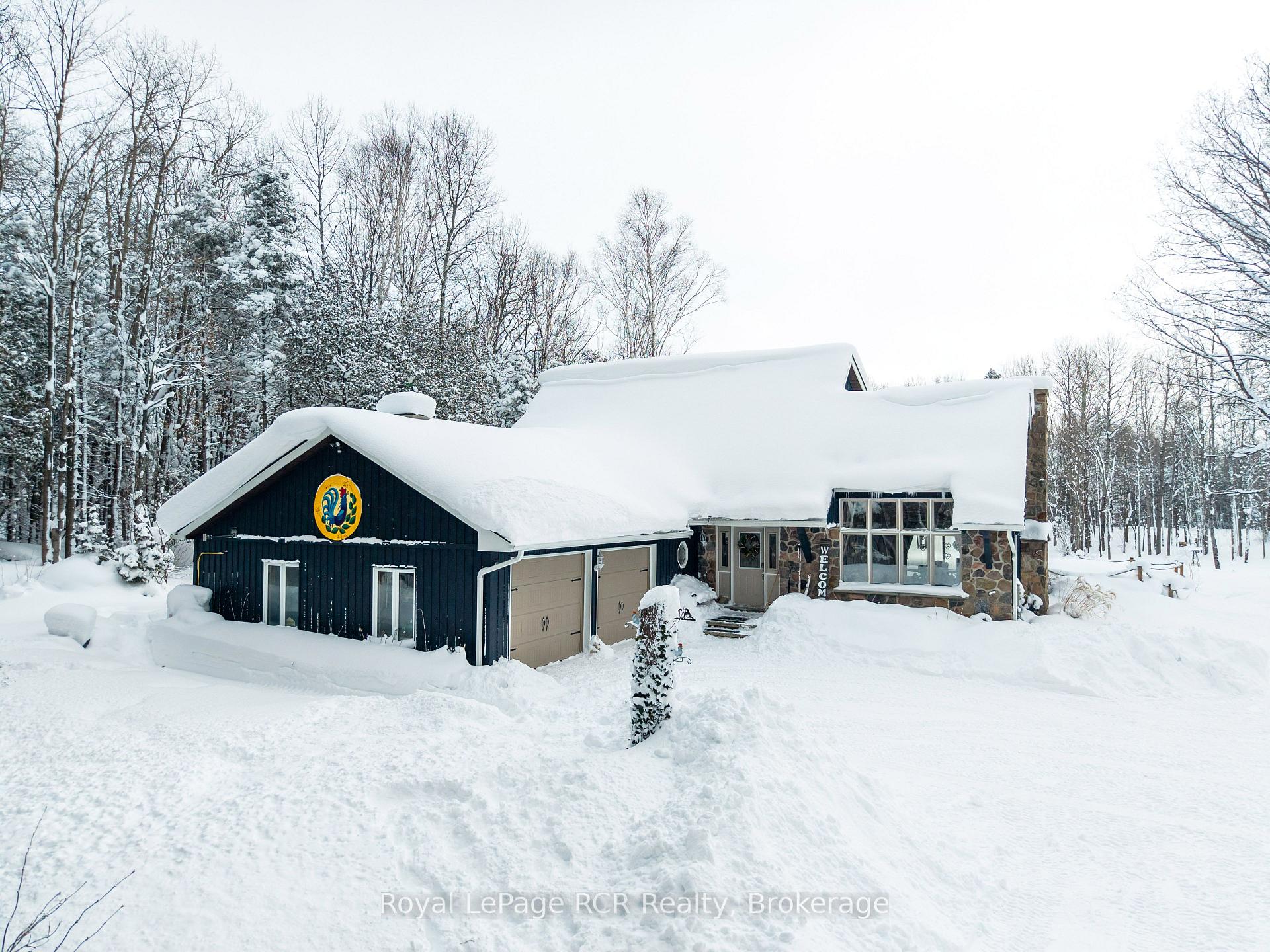 Tucked away in total privacy, this exceptional 49.5-acre property is a rare retreat for nature lovers seeking peace, space, and connection to the outdoors. Surrounded by wildlife and mature landscape, the land offers a beautiful mix of forested land with mulched trails throughout and a natural spring fed pond that enhances the serene setting. The updated 1.5-storey home with loft is warm, welcoming, and thoughtfully improved. The main floor features a spacious living room with cathedral ceilings, a propane fireplace, hardwood floors throughout and new windows on main and upper level. The large main floor primary bedroom offers two closets and a completely redone 3-piece ensuite. The kitchen was completely renovated (2020) with quartz counter tops and island and new appliances, with a new patio door providing access to a large composite deck (2022), perfect for entertaining or simply enjoying the peaceful surroundings. Upstairs, you'll find two additional bedrooms, a 4-piece bath, and ample storage. The semi-finished basement offers a rec room and additional space to grow, along with updated mechanicals including water softener (2022), UV light, 200-amp breaker panel, furnace (2017), central air, and central vacuum. For hobbyists or those needing extra space, the property includes an attached insulated & heated 24'x24' 2-car garage plus a separate detached 24' x 23' detached 2-car garage. Also included with property is a dog kennel with doghouse. Modern conveniences and updates such as fibre internet and a security system (2022) septic bed (2022) ensure comfort, connectivity and peace of mind. A great opportunity offering quiet, privacy, and endless space-an ideal escape where nature, comfort, and functionality come together.