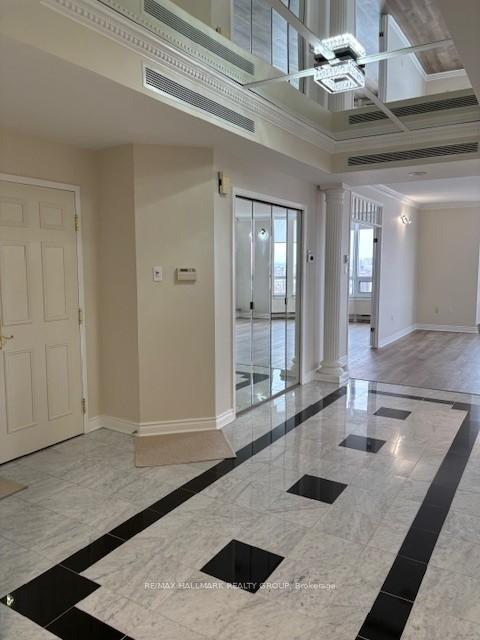 Welcome to "The Classics at Riviera" - this elegant 1990 sq ft condominium offers 2 bedrooms plus a den, 3 bathrooms and an unparalleled lifestyle with an array of top-tier amenities. Boasting a bright and spacious floor plan with marble foyer, high ceilings, new gleaming hardwood floors and an abundance of windows. The generous living room, den, and formal dining room provide ideal spaces for both everyday comfort and entertaining. The well-appointed kitchen features granite countertops and opens to an inviting eating area. Impressive primary suite, complete with two walk-in closets and a luxurious 6-piece ensuite with Roman tub and separate shower. The unit also features a spacious secondary bedroom, additional full bathroom, and convenient powder room. Additional highlights include a balcony, in-suite laundry, underground parking, and a storage locker. Residents enjoy an abundance of exceptional amenities, including a fully equipped fitness centre, weight room, indoor pickleball court, indoor pool, sauna, and steam room. Entertain in the elegant party room with piano and dining area, relax in the library, or enjoy the games room with pool table and a separate ping pong room. Outdoors, beautifully landscaped grounds feature walking paths, fountains, BBQ areas, an outdoor pool, and tennis courts. Added conveniences include a hair salon, meeting room, concierge services, and 24/7 gated security. Ideally located minutes to the 417, Trainyards shopping, and a short walk to Hurdman LRT station, this exceptional condominium offers the perfect blend of luxury &convenience! Tenant pays heat, hydro and tenant insurance.