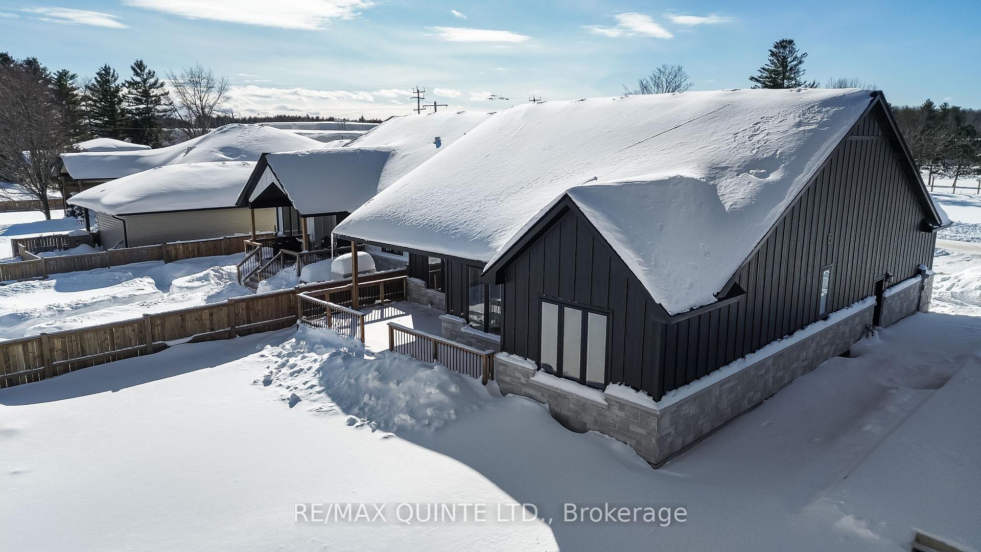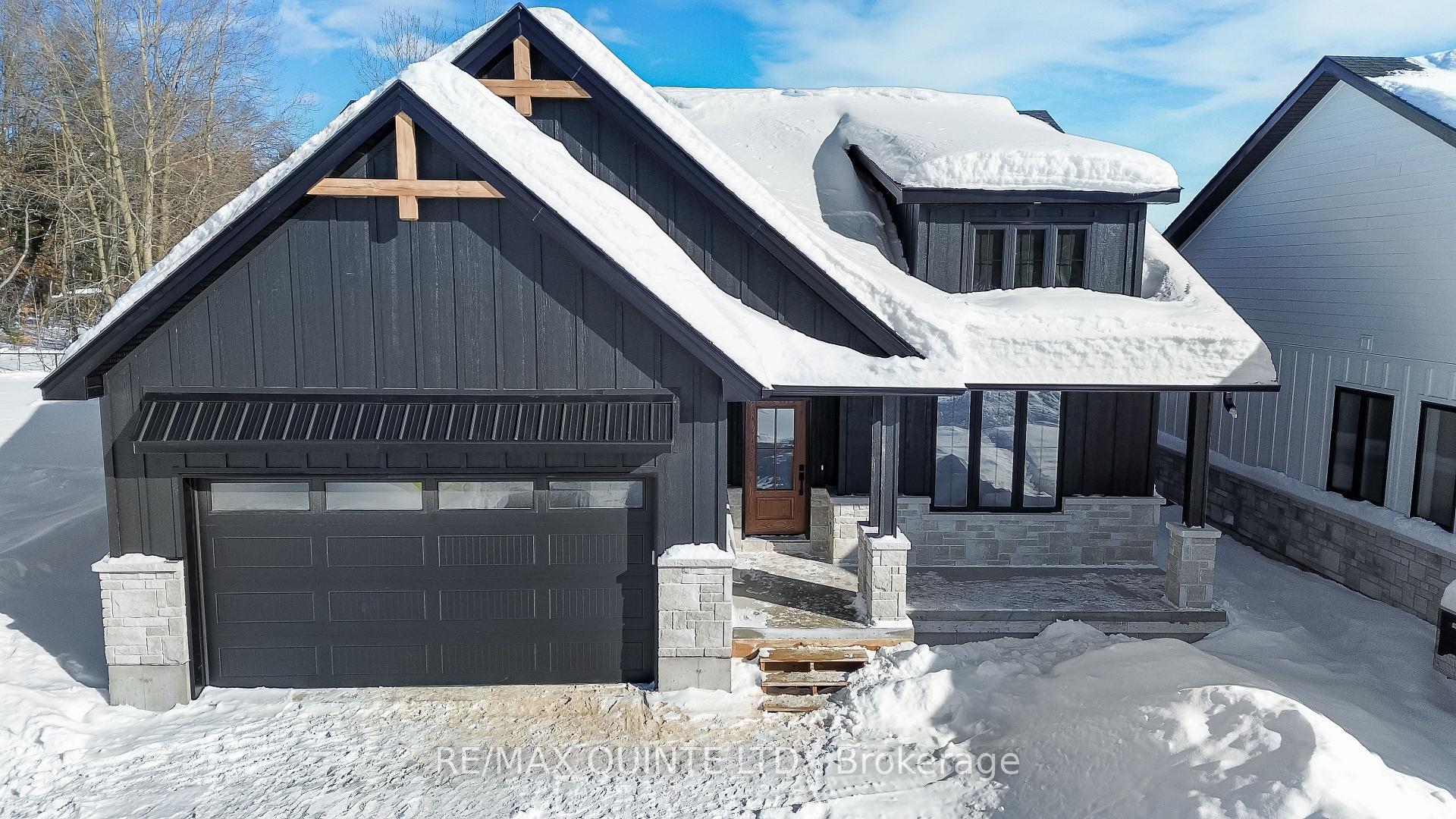 Located in Woodland Heights, this 2-bedroom, 2-bath Craftsman-style bungalow is engineered for a simplified, worry-free lifestyle. Situated on full municipal services, the home features a strategically designed open-concept living area. The space is anchored by an integrated gas fireplace featuring a stone surround, fluted wood detailing, and custom built-in cabinetry. This area flows directly into the kitchen and dining zones-finished with precision cabinetry and quartz surfaces-with a walk-out to the covered deck for an optimized indoor-outdoor living experience. The primary suite includes a practically designed ensuite with a double vanity and a custom-tiled shower. A private second bedroom, 4 pc bathroom and a large mudroom/laundry with access to an insulated double garage complete the main level. The full unfinished basement is pre-plumbed and wired, allowing for a seamless future expansion of a 3rd bedroom and bath. Delivery is completely turn-key, including a paved driveway, sodded lawn, and high-efficiency HVAC systems. Ideally situated for professionals or downsizers requiring proximity to the 401 and Prince Edward County.