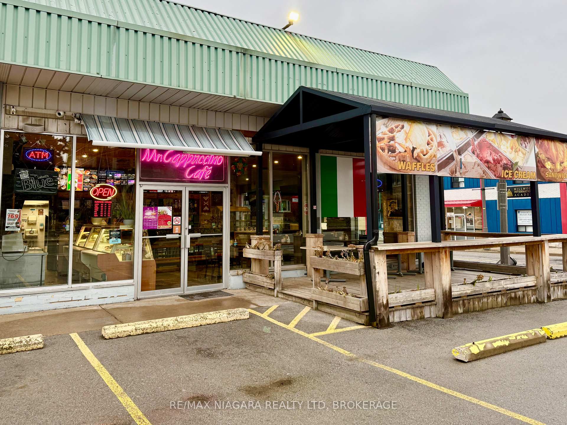 DEAL OF THE CENTURY - TURNKEY Mr. CAPPUCCINO ICE CREAM, COFFEE BAR & BISTRO: University District - BUSINESS IN THE HEART OF NIAGARA FALLS! Exceptional opportunity to acquire a fully built-out, fully licensed café / coffee & pastry shop in one of Niagara Falls' most strategic, high-traffic locations. Sale of business only (no property)-ideal for owner-operators or investors seeking immediate upside. Located downtown Niagara Falls, steps from the University of Niagara Falls, minutes to the U.S. border, and just 1 km from the Falls. Surrounded by tourism, transit, students, casinos, Airbnbs, parks, banks, and major attractions. Walking distance to bus and train stations ensures steady year-round foot traffic.The space offers 1,725 sq. ft. with 30 indoor seats and 20 outdoor patio seats, featuring a new interlock brick patio, wooden deck, and gazebo-perfect for peak tourist seasons and events. Fully LCBO licensed, allowing for alcohol service, private functions, and extended hours. Situated on a corner lot with commercial zoning, designated in the Official Plan, and within a Major Transit Station Area. 40+ shared parking spaces available, with minimal parking demand from neighboring businesses. Significant capital improvements completed, saving time and cost: Fully equipped commercial kitchen that does not currently require a hood range, Second-floor office area with washroom, 3 Brand-new washrooms, New plumbing and drainage system, Tankless hot water heater with meter, Additional electrical panel for future expansion, Professionally built patio, deck & gazebo. Ask to see a list of included chattels. Rental items attached. A true turnkey operation in a location that cannot be replicated. Ideal for café operators, bakers, restaurateurs, or investors looking to capitalize on Niagara Falls' booming tourism and student market. Rare opportunity-act now.