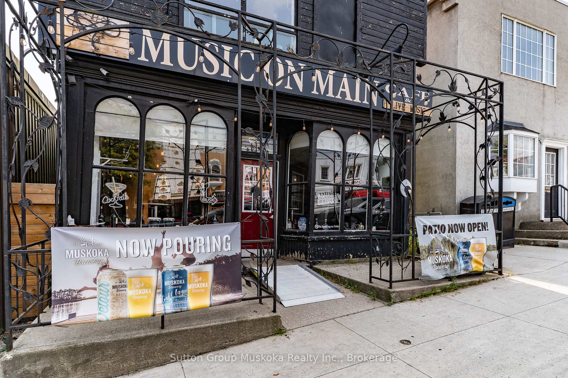 What a wonderful opportunity to own a piece of Historical Downtown Huntsville. This Main Street location in Muskoka, offers a great space both inside and outside to accommodate your ideas of what you want to bring to the town. Currently used as a live music venue / bar , the casual sitting atmosphere leads to an awesome patio. So many ways to utilize this open outside area. Current liquor license does cover outside tables at the entry , the main level and the patio. Also features a kitchen to provide some food for your patrons . The upstairs is a great space for the nights you work late with its own bedroom and bathroom . This building is zoned CBD. Please see documents for allowable uses. The Seller is willing to leave almost ALL contents for the next Buyer to start right back up!