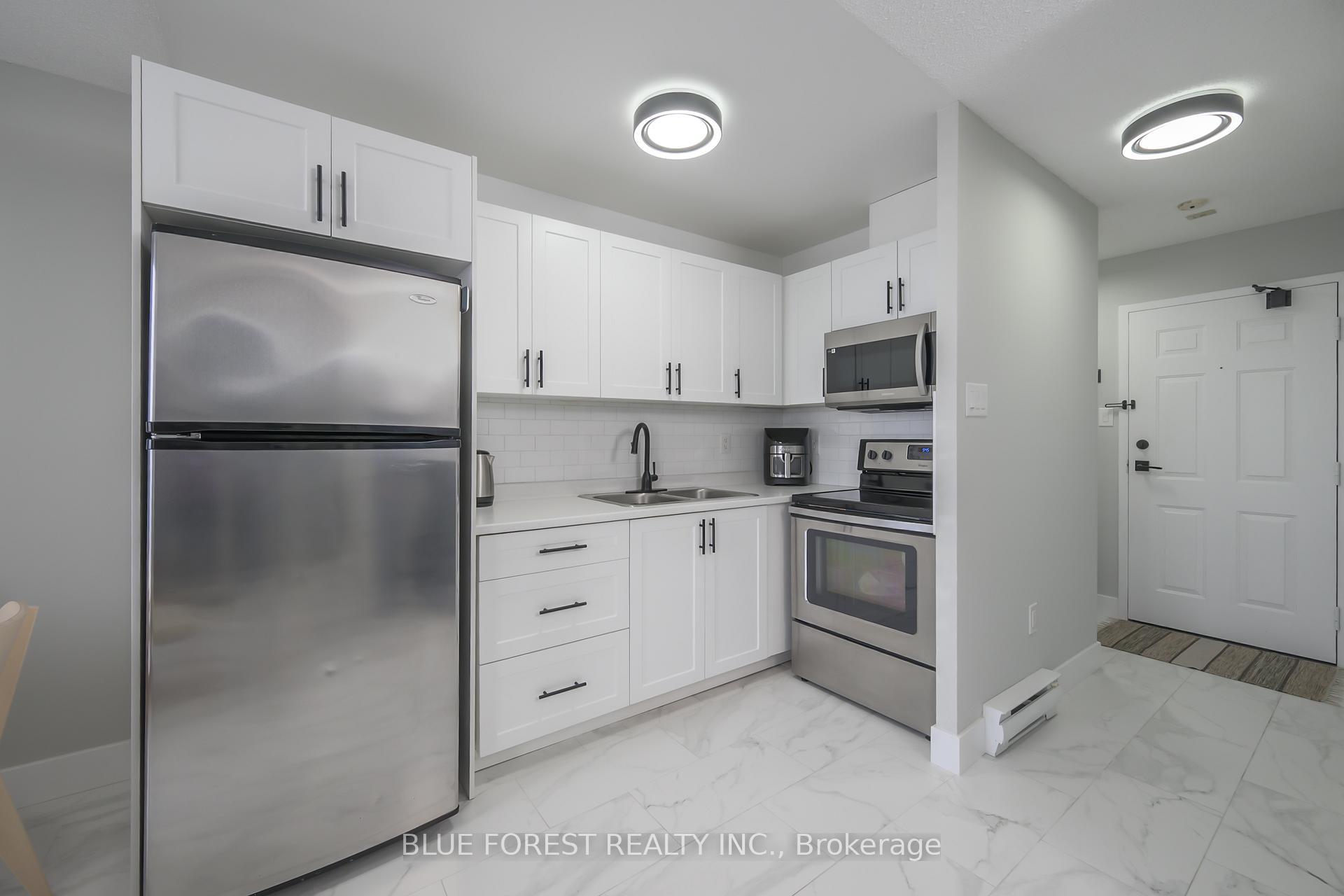 Top floor privacy with sunset views! Experience quiet living in this rarely available top floor unit with no neighbors above you! Bright, West facing unit with a partially enclosed balcony that boasts an expansive view stretching all the way to Riverbend. This updated 1 bedroom unit is perfect for an independent adult, young couple, or part of your investment portfolio. The refreshed kitchen offers ample cabinetry, a stylish tiled backsplash, and a space saving over the range microwave. New tile flooring throughout for easy maintenance, new modern baseboards, and a fresh coat of paint. New washer/dryer conveniently located in unit. Low condo fees! Well maintained and managed building featuring a gym, sauna, ample open and covered parking. Located close to bus routes direct to Western University & downtown, and a quick drive to all other amenities including Hwy 401! Furniture is negotiable.