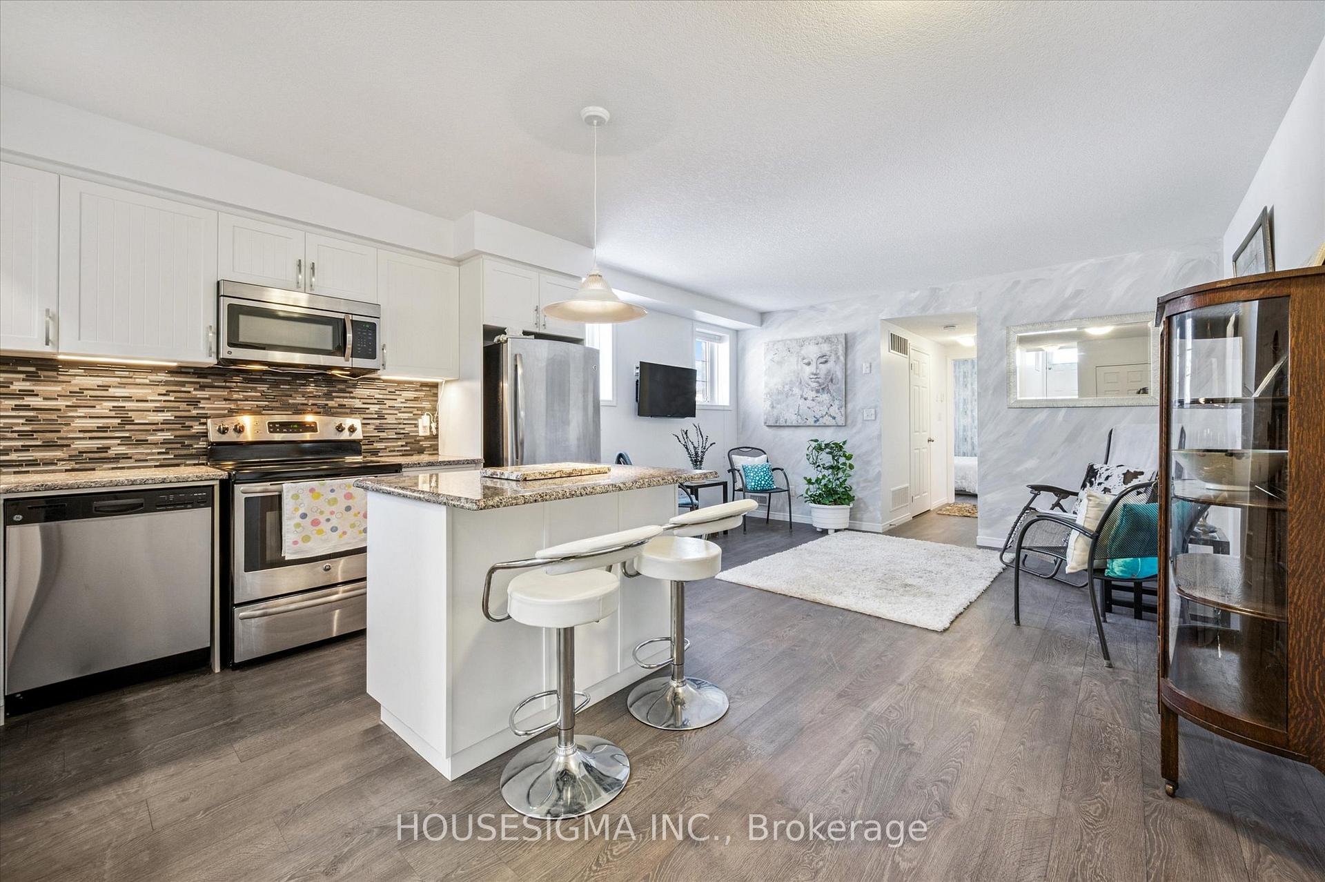 Fantastic opportunity for first-time buyers or investors to own a modern end-unit stacked townhouse in a highly desirable Kitchener location. This well-appointed 1 bedroom, 1 bathroom home offers 753 sq. ft. of bright, open-concept living with no side neighbours for added privacy. The upgraded kitchen features stainless steel appliances, ample cabinetry, and flows seamlessly into the living and dining area - perfect for everyday living or entertaining. The spacious bedroom includes a large window allowing for plenty of natural light, while the unit also offers a large interior storage/crawl space for added convenience. Enjoy your own private, fully enclosed patio, ideal for summer relaxation and BBQs. Additional highlights include owned tankless hot water heater and water softener, and one exclusive parking space. Located close to Conestoga College, Hwy 401, transit, shopping, schools, and all amenities, this move-in-ready home offers comfort, privacy, and excellent value in a sought-after community.