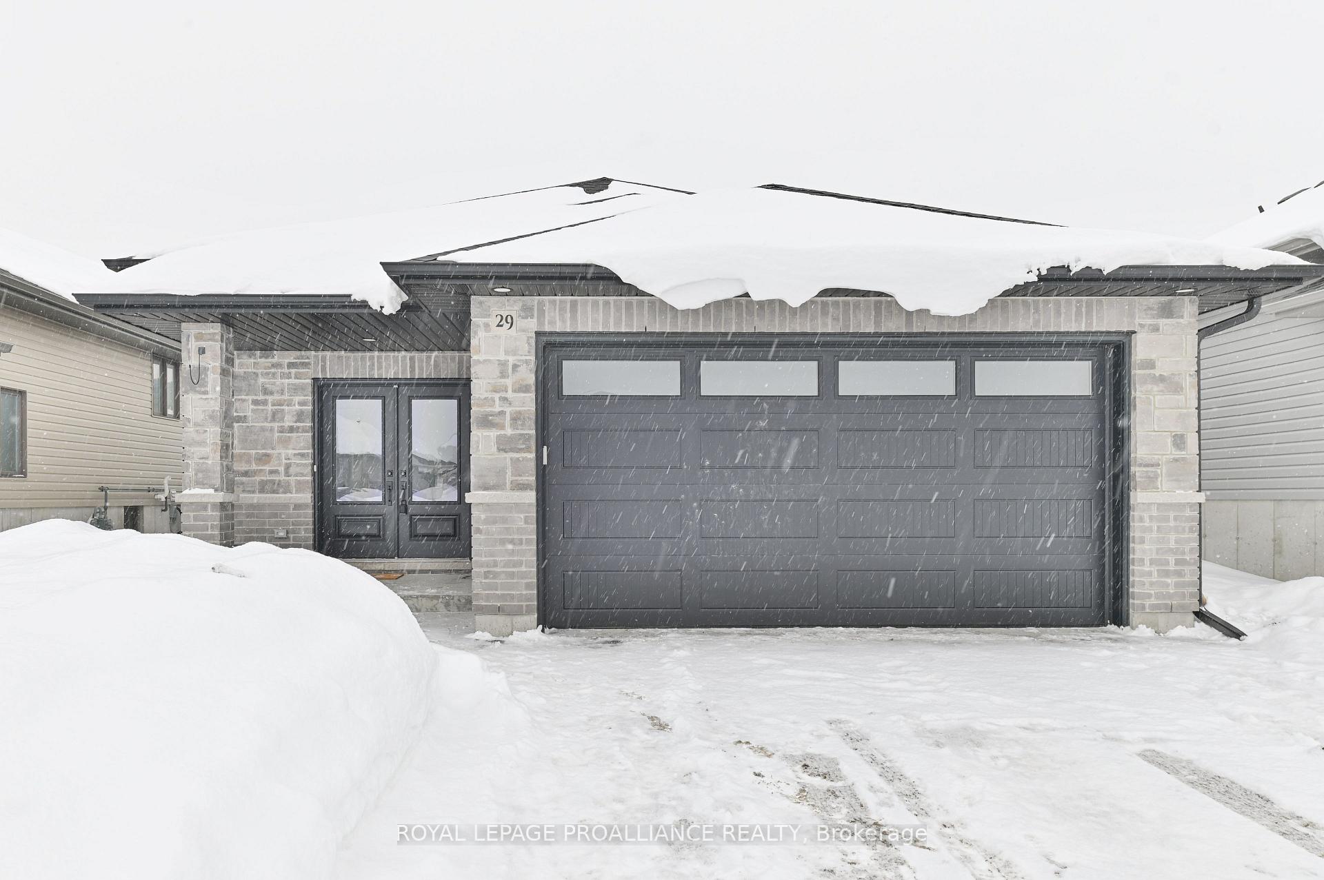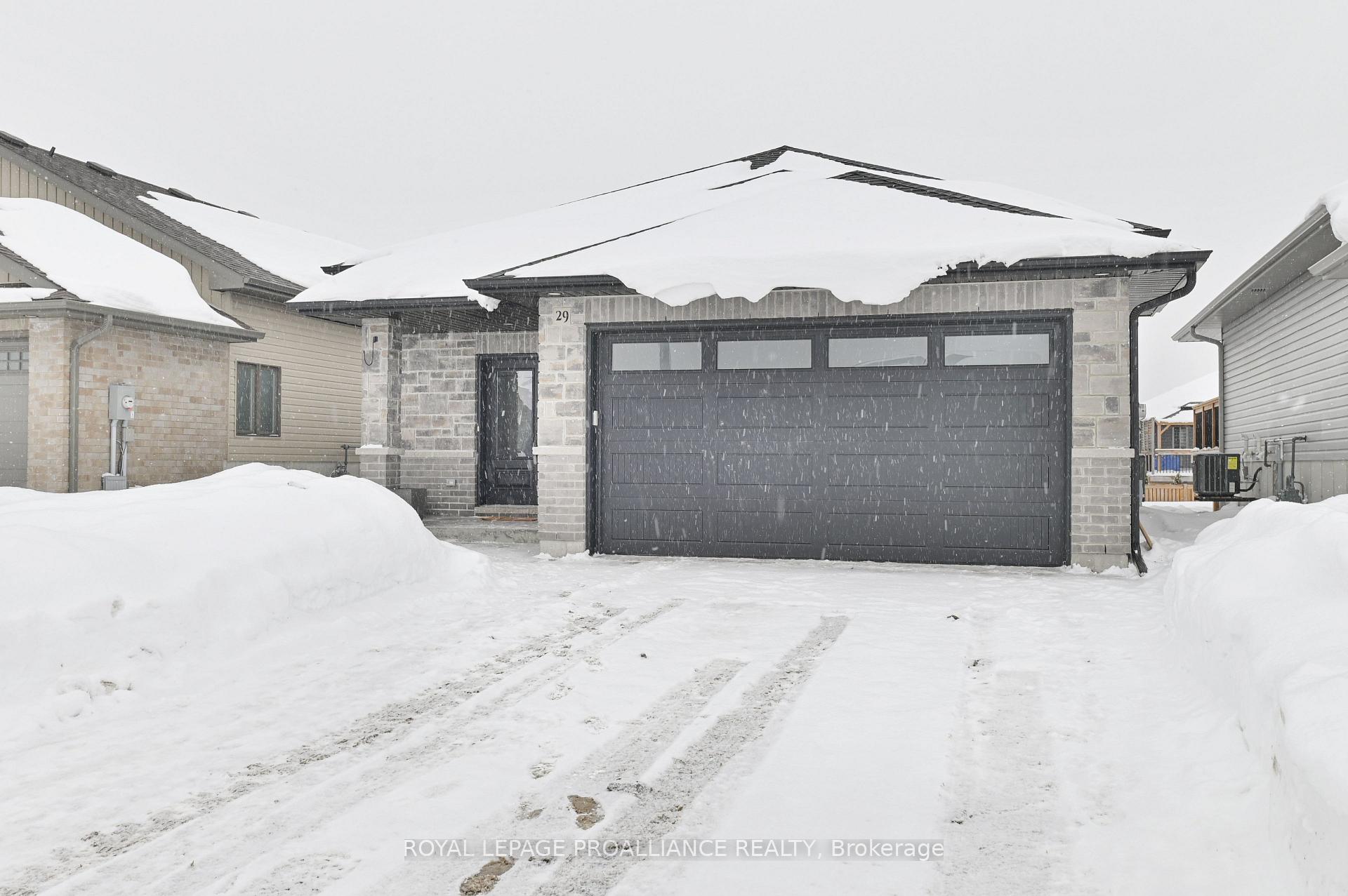 Welcome to 29 Cedar Park Crescent, where a spacious and welcoming front entry sets the tone for this thoughtfully finished home. With direct access to the attached two-car garage, the entry offers everyday convenience and transition into the main living spaces. The home is fully finished from top to bottom and features a bright, open-concept main living area with patio doors leading to a partially covered deck-an inviting space for both relaxing and entertaining. The kitchen is finished with tasteful details, stainless steel appliances and includes a peninsula with seating, creating a comfortable and functional gathering place at the heart of the home. The main floor also offers two well-proportioned bedrooms and a 4-pc bathroom with a convenient cheater door to the primary bedroom. The fully finished basement adds valuable living space with a generous rec room, two additional bedrooms, and a 3-pc bathroom. Ideally located close to schools, town amenities, and quick access to the 401, this home combines comfort, functionality, and location in a setting well suited to family living.