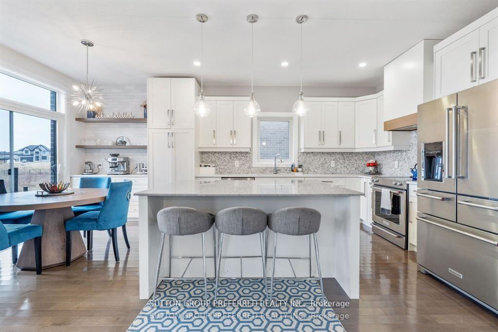 Stunning custom-built home on a premium walkout lot backing onto Creek. This fully custom property features everything upgraded, from modern light switches, to faucets, to quartz countertops throughout and a newly redesigned kitchen with high-end appliances and a dedicated coffee station. Large windows fill the home with natural light, complementing the open layout. Enjoy outdoor living on the double composite deck with glass railing overlooking the creek. Inside, you'll find 4 bedrooms, 3.5 baths, 3 electric fireplaces, a formal dining room along with custom built-ins in the mudroom and basement. The walkout lower level offers a media room, wet bar, spacious rec area, and direct access to the yard. A truly exceptional home showcasing quality, comfort, and beautiful views.