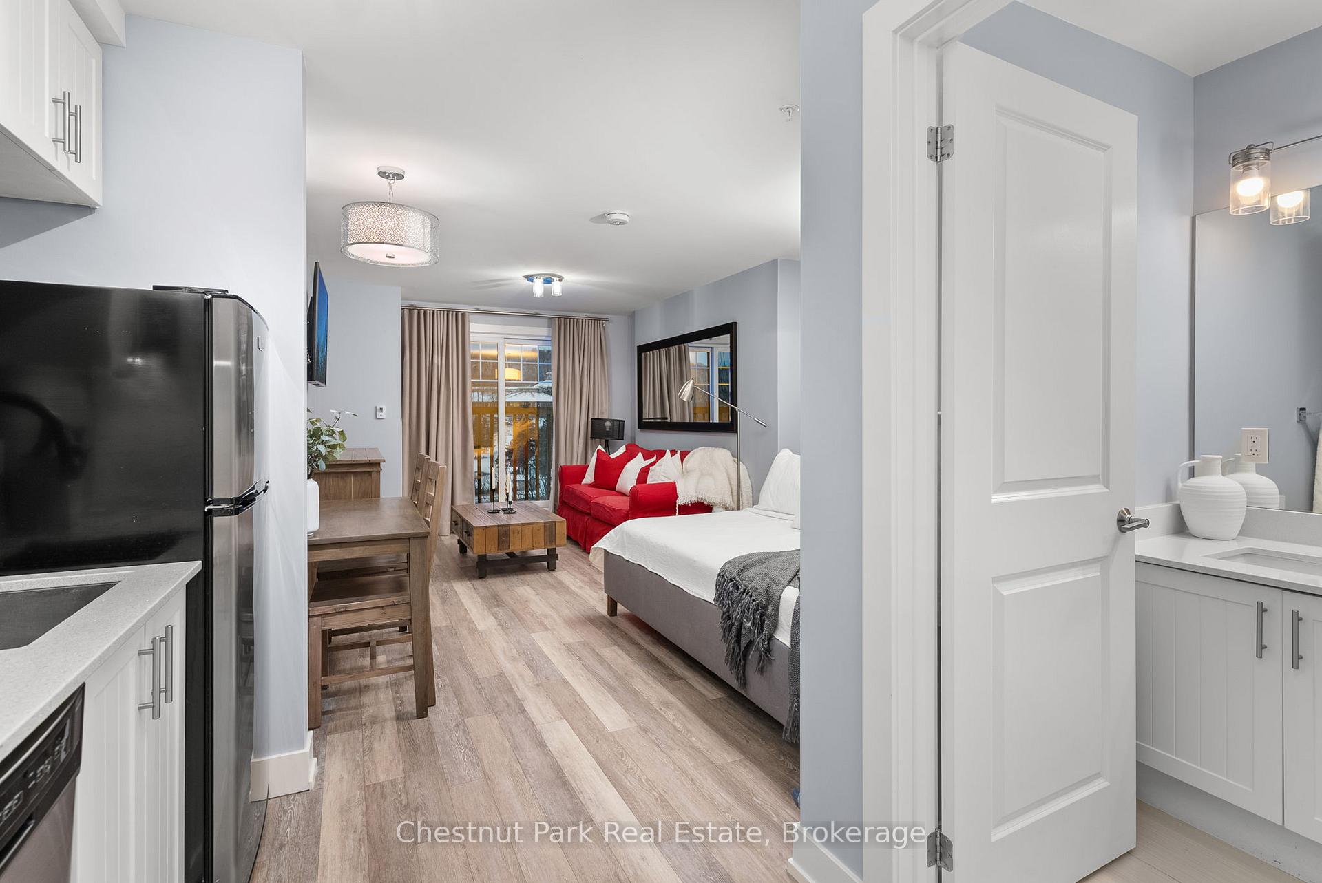 Welcome to effortless condo living at Lakeside Lodge at Deerhurst Resort. Unit 206 is a turnkey bachelor suite, built in 2019, available for lease, offering a stylish, low-maintenance retreat designed to be enjoyed year-round. Thoughtfully laid out and move-in ready, this unit is ideal for tenants seeking comfort, convenience, and a true Muskoka lifestyle. Enjoy access to an in-building gym, laundry facilities, inviting common areas, a beautiful outdoor pool, and waterfront access to Peninsula Lake. Deerhurst Resort's extensive amenities are right outside your door, with Huntsville's shops, dining, and services just a short drive away. Monthly rent includes all utilities, with hydro being the only additional expense, making budgeting simple and predictable. From summer lake days and golf to winter skiing, snowshoeing, and cross-country trails, this four-season location offers something to enjoy all year long. With on-site trails, golf courses, proximity to Hidden Valley Ski Club, and nearby provincial parks, Unit 206 delivers resort-style living in every season. A fantastic lease opportunity for anyone looking to enjoy Muskoka living with minimal upkeep and maximum lifestyle appeal.
