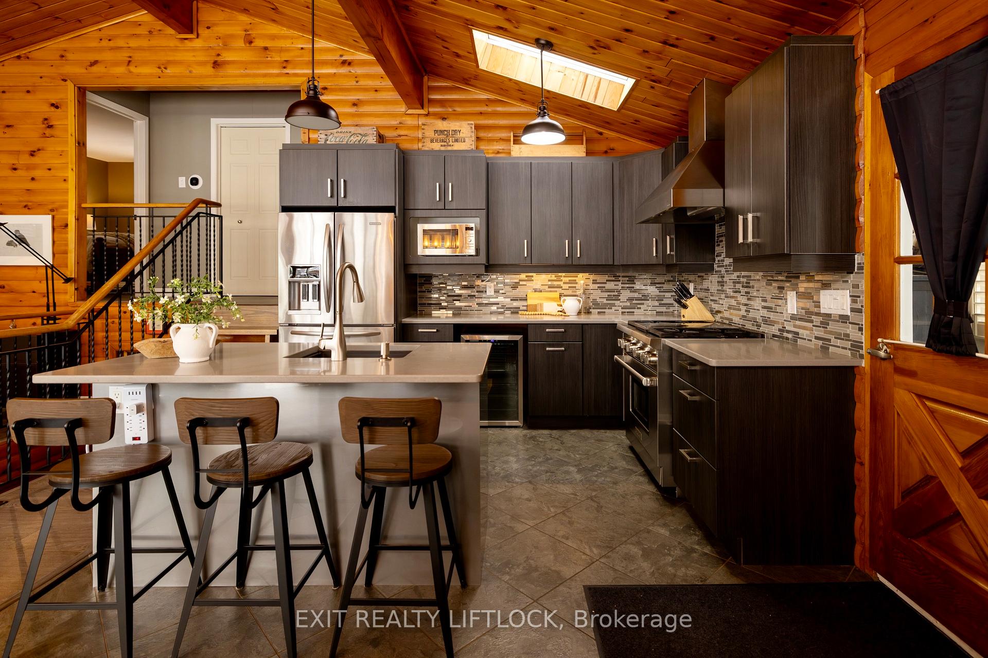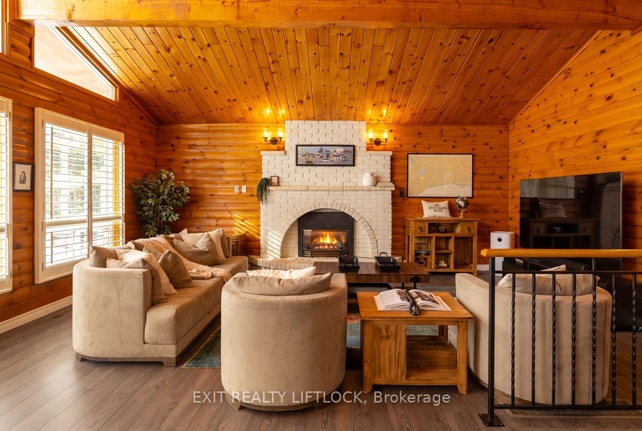 If you've been dreaming of a slice of paradise in the sought-after waterfront community of Bobcaygeon, this could be the one. This charming Viceroy-style backsplit is set on a beautifully landscaped, country-like lot with full municipal services, featuring mature trees, perennial gardens, and a spacious circular driveway. Just steps from Lock 32 on the Trent-Severn Waterway, the home offers the perfect balance of small-town living and cottage charm. Leave the car at home and enjoy a truly walkable lifestyle with shops, cafes, dining, and the waterfront all within easy reach. Inside, natural light fills the space, highlighting vaulted ceilings, warm wood accents, and an open, welcoming layout. The updated kitchen flows seamlessly into the main living area, where a striking propane fireplace serves as the focal point of the home. Floor-to-ceiling windows with California shutters frame the space beautifully, while a walkout leads to a south-facing wraparound deck, ideal for summer BBQs, entertaining, or simply unwinding outdoors. The upper level offers a comfortable primary bedroom with a 4-piece ensuite, along with a second bedroom and additional full bath. The lower level adds flexibility with a rec room, office nook, laundry area, and generous storage. A well-designed mudroom creates the perfect transition from outdoors to indoors and includes a convenient 3-piece bath, ideal for everyday living. Two detached bunkies further expand the possibilities, including one with a 3-piece bath, making them perfect for guest accommodations, creative studios, a gym, home-based business, or potential income opportunities. A 1.5-car garage with a rear workshop and ample parking completes the package. Don't miss your opportunity to experience 231 Front Street West for yourself. This is Bobcaygeon living at its best.