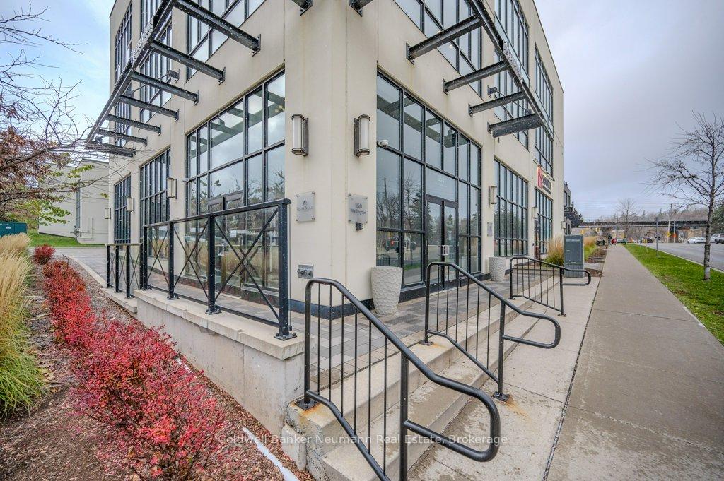 Spectacular Corner Unit with Panoramic Views & Unforgettable Sunsets. This west-facing corner suite offers sweeping views of downtown Guelph and golden sunsets that light up the sky each evening. Expansive windows flood the space with natural light, creating a bright and welcoming atmosphere from morning to night. Proudly owned by the original purchasers, the unit has been upgraded throughout with premium finishes. The chefs kitchen features elegant penthouse-level cabinetry and granite countertops, flowing seamlessly into an open-concept living area with a cozy fireplace perfectly positioned to showcase the city skyline. The spacious primary suite includes a walk-in closet and a luxurious ensuite with double sinks and a walk-in glass shower. The second bedroom, complete with a built-in Murphy bed, offers smart flexibility for guests or a home office. A second full bathroom features an upgraded deep soaker tub. Step outside and you're just a short walk from the GO Train, restaurants, charming boutiques, the Sleeman Centre, and all of downtowns attractions making it easy to enjoy the best of city living. Residents enjoy access to first-class amenities, including a well-equipped fitness centre, party room, guest suite, and a rooftop terrace. The unit also includes TWO tandem underground parking spaces, offering added convenience and peace of mind in the heart of downtown. This is a rare opportunity to own one of the most desirable units in the building sophisticated, spacious, and unmatched in both comfort and views.