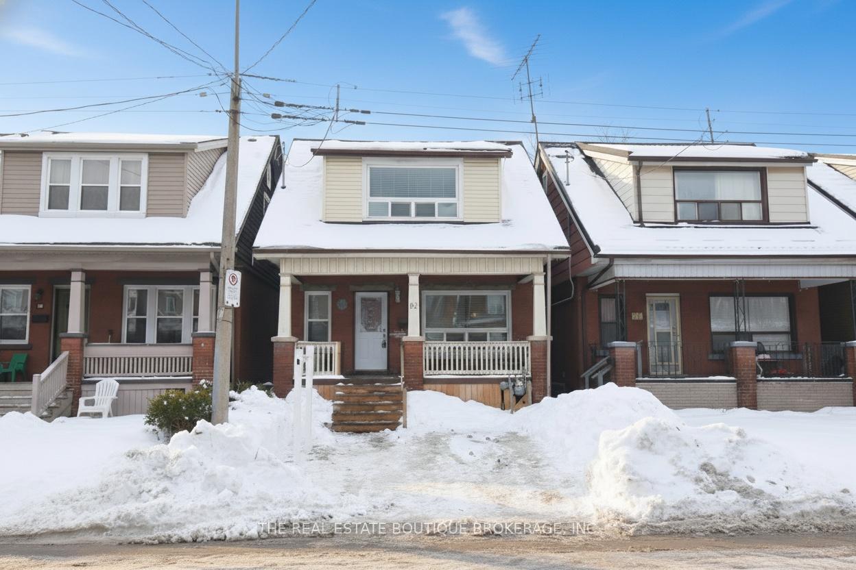 Welcome home to this charming detached property where classic character meets modern updates. An inviting front porch sets the tone for morning coffee or evening relaxation. Inside, hardwood floors, tall gumwood trim, and a beautiful wood banister staircase highlight the home's original craftsmanship. The bright living room offers plenty of natural light, while the formal dining room with fireplace is ideal for family dinners and entertaining. The updated kitchen features brand-new cabinetry, newer stainless steel appliances, and ample counter space and storage. It flows into a comfortable dinette and a thoughtfully added family room, creating a warm and functional space for everyday living. Upstairs are three generous bedrooms, each with a walk-in closet, offering rare and practical storage. Major updates include all new windows and a sliding glass door, upgraded electrical with breakers, a new furnace, and a new water heater. The fully fenced backyard is perfect for relaxing and entertaining, complete with a patio, pergola, and garden shed. A wonderful blend of charm, space, and modern comfort, this Hamilton home is move-in ready.