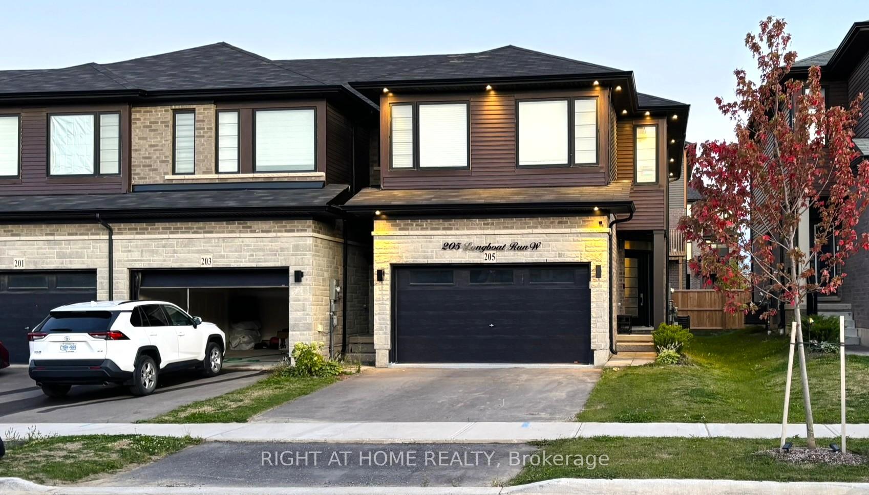 Welcome to this exceptional 3-bedroom, 2.5-bath freehold end-unit townhome built in 2022 by renowned Losani Homes. With only one owner since 2023, this property has been meticulously cared for and thoughtfully upgraded throughout. Boasting approx. 1,900 sq. ft of living space (above & below grade combined). This house offers the feel of a detached home thanks to its oversized 1.5-car garage with EV charger outlet installed, extra-wide driveway, and end-unit design, this home stands out for style, space, and functionality. The main floor features 9 ft ceilings, elegant wainscoting, and an open-concept layout filled with natural sunlight. A modern kitchen showcases quartz countertops, quality finishes, and a bright breakfast area overlooking the backyard. Pot lights on all floors - inside and outside - create a warm and inviting ambiance day and night. Upstairs, enjoy three spacious bedrooms including a large primary suite with a walk-in closet and a beautifully upgraded ensuite with quartz counters. The convenience of upper-level laundry adds to the home's practicality. The finished basement provides additional living space and offers potential to be converted into a future rentable suite. Step outside to a fully fenced backyard, complete with a stylish floating deck, perfect for relaxation and outdoor entertaining. Located in a family-friendly Brantford community close to parks, trails, schools, shopping, and major roadways, this home offers the perfect blend of comfort, modern features, and great curb appeal. This is truly a move-in-ready home that checks all the boxes, come see it in person and experience everything it has to offer!