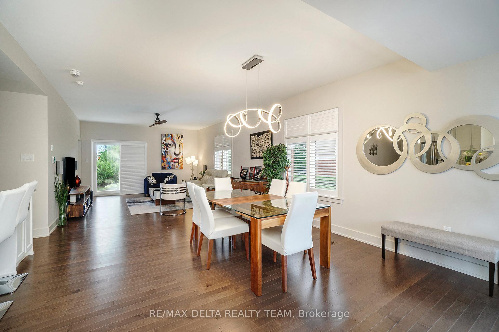 Immaculate end unit bungalow in Chapel Hill South, corner of Renaud Rd and Pagé. NO STAIRS to get in. Main level entry. This unit features 3 bedrooms, 3 full bathrooms over 2523 sqft of living space. Open concept plan w/hardwood, 9ft ceilings & exquisite light fixtures. Gorgeous kitchen w/granite countertop & backsplash. High end appliances including DUAL ZONE wine & beverage fridge, dual zone gas oven. Under cabinet lights, soft close drawers. Patio w/mini garden, gas bbq hook up. Large master has room for king size bed, California Closets walk-in, ensuite w/glass shower, granite vanity & built in hamper. California shutters on most windows. Pet friendly complex. 2 parking spots right out front. This is a Smart Home, ready for Amazon Alexa or Apple Siri. Lots of Lutron light switches, smart Ecobee thermostat, wireless cameras, front door keypad with camera. Laundry can be relocated to main floor behind the walk-in closet as per builders original plan. All gym equipment is available for separate purchase. 2 minute walk to Family Dental clinic. 15min drive to The Forge Pickleball Club. 12mins to Orleans Tennis & Pickleball Club. 7 mins to Chapel Hill South Park & Ride.