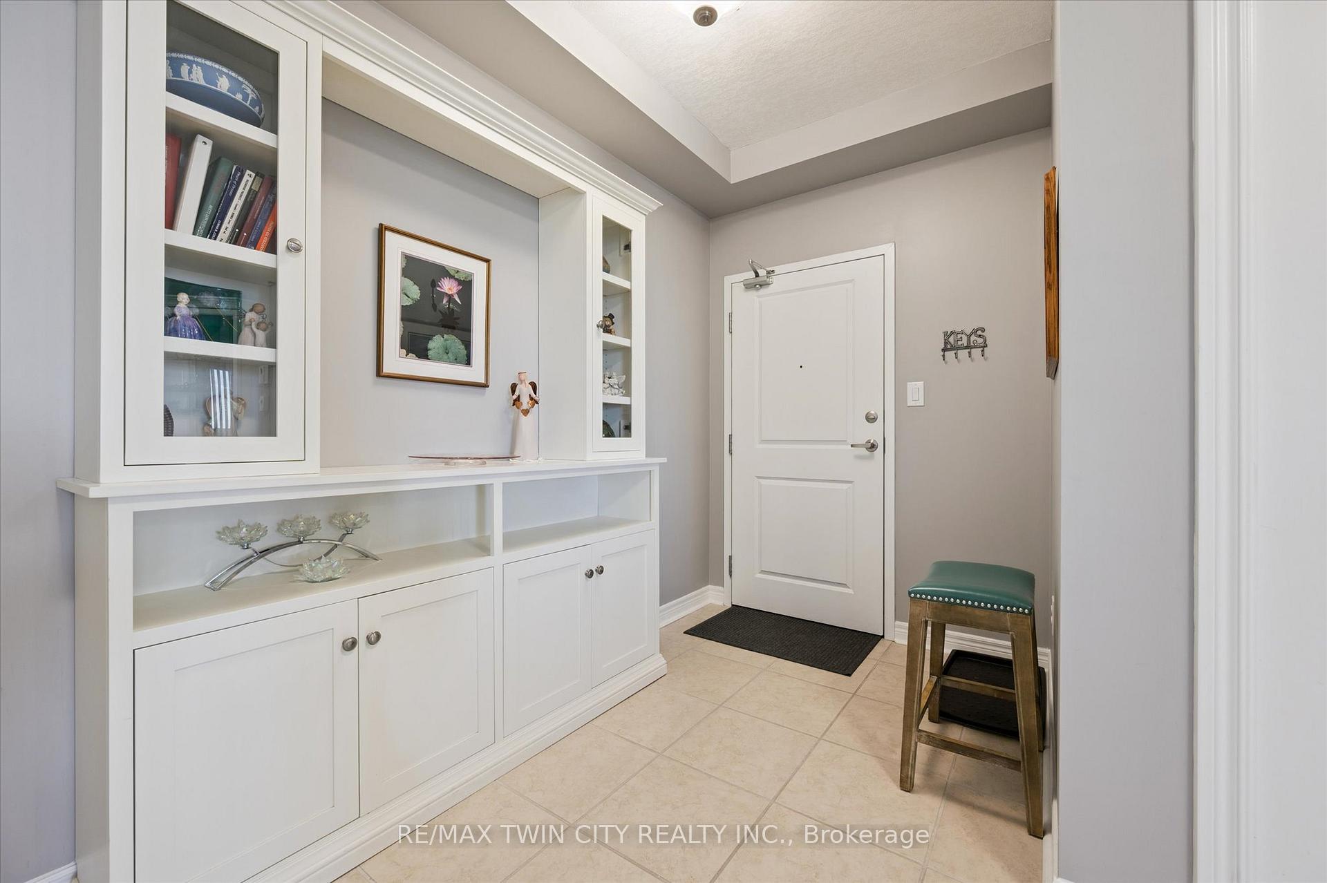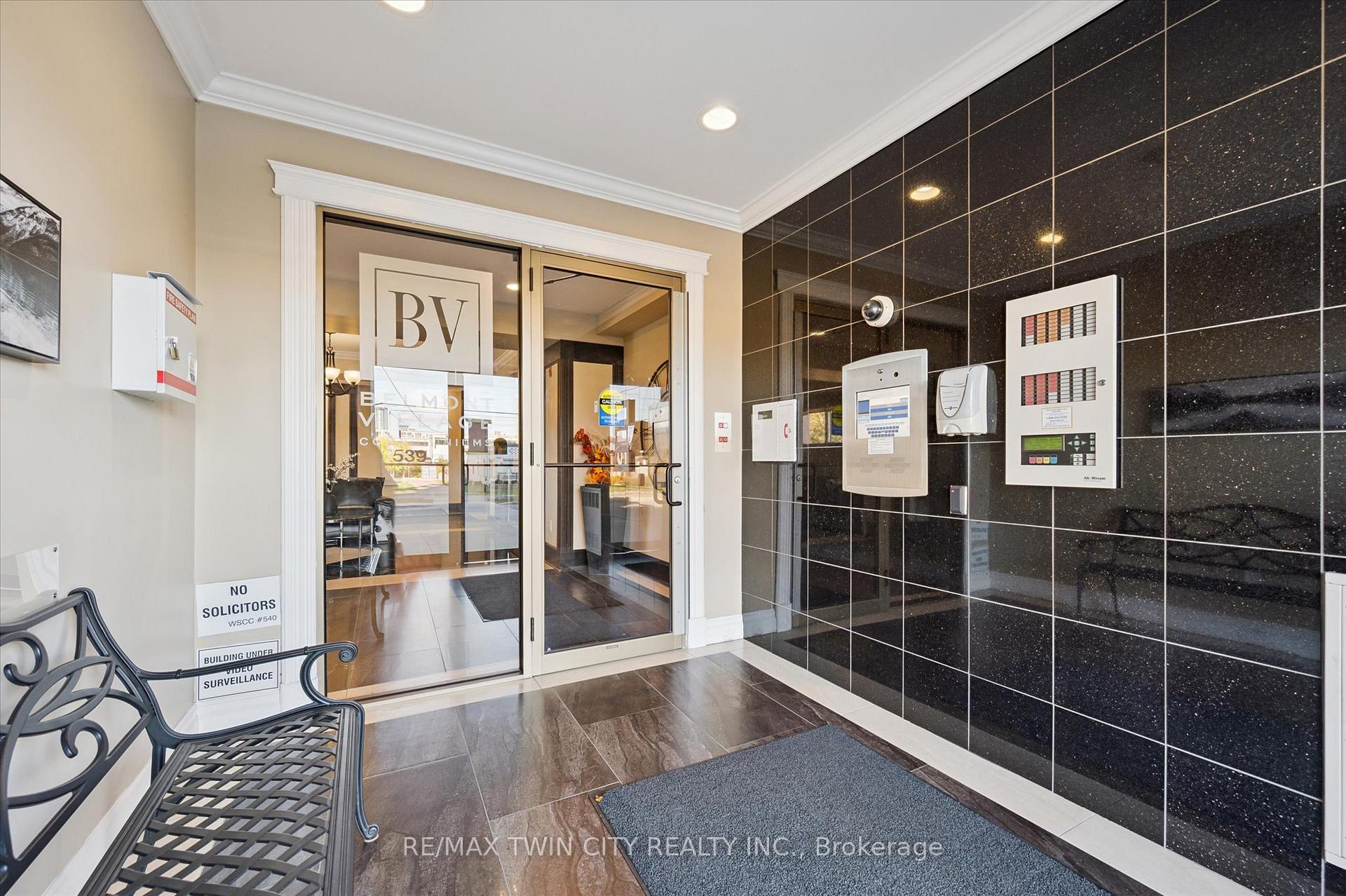 Come and experience care-free living in Belmont Village Condominiums, a beautiful and very well-kept building. Unit 809 offers a spacious, open-concept kitchen/dining room/living room layout with updated luxury wide-plank flooring in the main living space as well as both bedrooms. Step inside the unit and appreciate the built-in cabinetry and large coat closet as well as ceramic tile flooring in the entryway, laundry room and both bathrooms. Freshly painted throughout, this unit shows so well and is truly move-in ready. The laundry room has a newer stackable washer/dryer set (2024) plus room for a second fridge and storage space. The white kitchen has newer stainless fridge, stove and microwave, granite counters, an island with extra prep space, and plenty of storage. This corner unit is bright with lots of natural light and 180 degree views of the city. The balcony is east-facing providing a view of the morning sunrise, as well as covered afternoon shade - perfect for relaxing anytime of day. The large primary bedroom has a walk-in closet and ensuite bathroom with double sinks and walk-in shower. A second bedroom doubles as a den and guest space. One underground parking space that is close to the building entrance plus lots of visitor parking outside. Building amenities include: party/games room, media room, exercise room, guest suite, community BBQ on the patio. Condo fees include: heat, air conditioning, and water. Centrally located and walkable to all the shops and restaurants in Belmont Village, the Iron Horse Trail, and quick access to Uptown Waterloo or Downtown Kitchener.