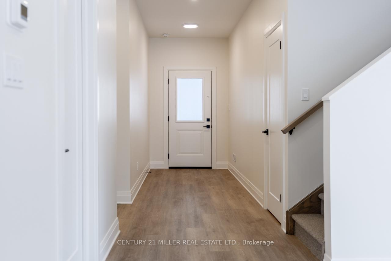 Brand new semi-detached home for lease in Rockwood, tucked at the end of a quiet street and overlooking forest and parkland. Offering over 2,100 square feet of bright, modern living space, this two-storey home delivers comfort with tall ceilings and large windows throughout. The stone and stucco exterior sets the tone, while inside you'll find clean contemporary finishes, a spacious kitchen with tall cabinetry, under-cabinet lighting, stainless steel appliances, and a backyard deck that's perfect for relaxing or entertaining. The second level features three spacious bedrooms, a versatile den ideal for a home office or study space, and a primary suite with a five-piece ensuite and a private walk-out balcony. With parking for three vehicles (1 garage, 2 driveway) and a peaceful setting surrounded by nature, this is an exceptional opportunity to lease a newly built home in one of Rockwood's most desirable pockets. Please note: some photos have been virtually staged.