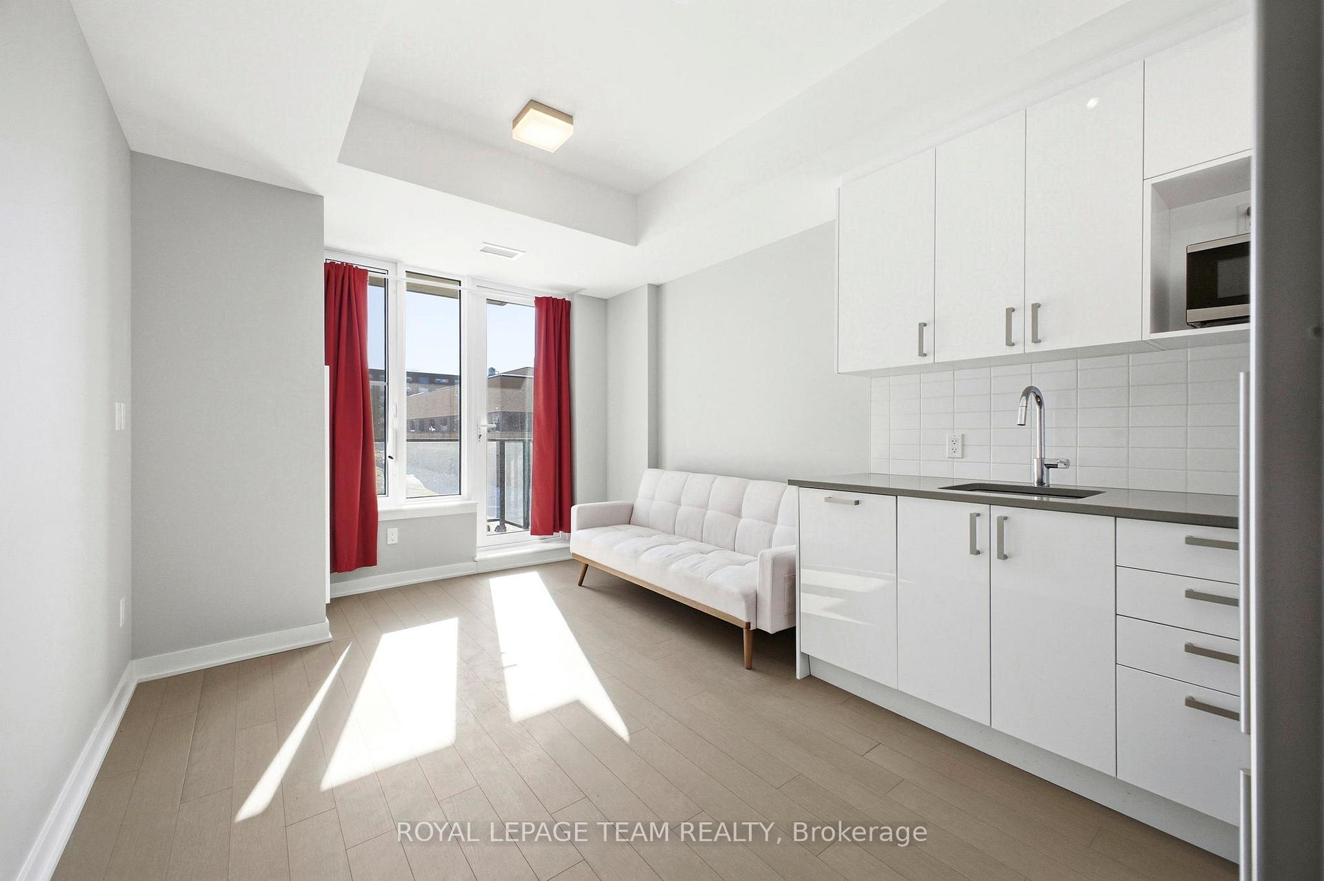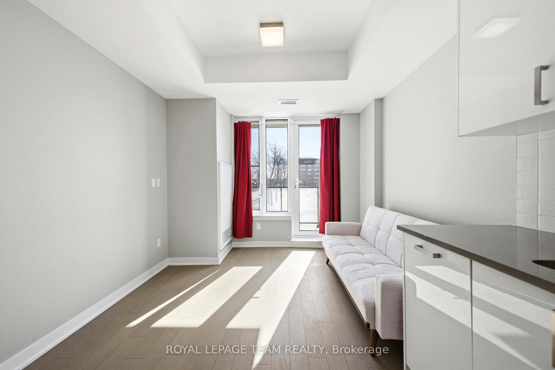 Welcome to Unit 209 at The Spencer in Greystone Village, where modern design meets an unbeatable Old Ottawa East lifestyle. Perfectly situated between the Rideau Canal and the Rideau River, you are steps to scenic bike paths, walking trails, cafés, restaurants, and vibrant Main Street amenities. This bright and efficiently designed bachelor features impressive 10 foot ceilings and oversized windows that fill the space with natural light. The contemporary kitchen offers sleek cabinetry, quartz countertops, stainless steel appliances, and clean modern finishes that feel both stylish and functional. The open layout is thoughtfully planned to maximize flexibility, allowing comfortable space for living, dining, and working from home. In unit laundry adds everyday convenience. The building amenities truly elevate the experience, including a fully equipped fitness centre and a stunning rooftop terrace with lounge areas, dining space, prep kitchen, gas fireplace, and beautiful river views. A guest suite is available for visiting family and friends. Located close to Saint Paul University and the University of Ottawa, and just minutes to downtown by bike, transit, or car, this condo is ideal for students, young professionals, or investors looking for a prime location. Modern. Efficient. Lifestyle driven. Unit 209 is city living done right.