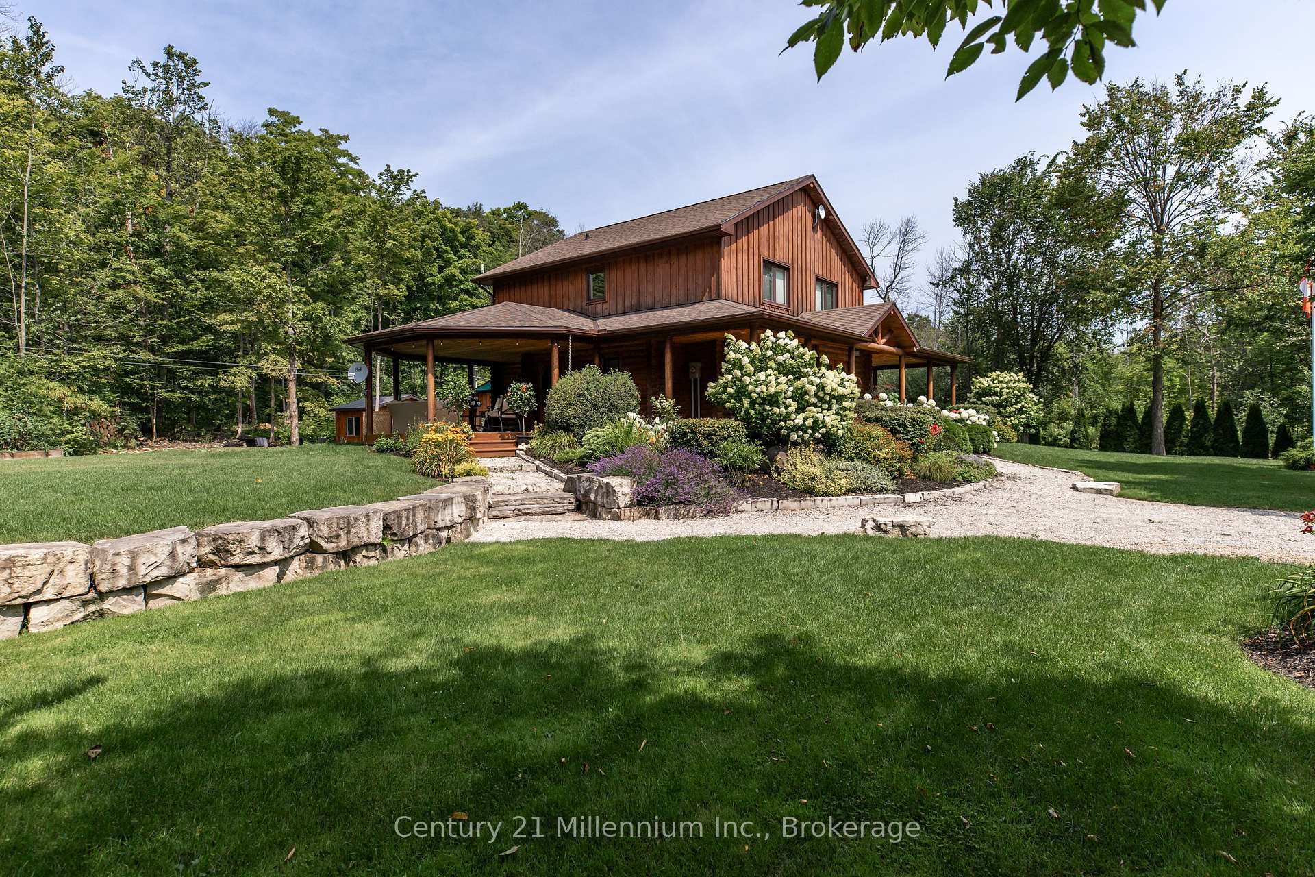 This stunning log home is nestled on the escarpment, offering seasonal water views of Colpoys Bay, and breathtaking sunrises. With water access just a stone's throw away, this property is the perfect retreat for nature lovers and outdoor enthusiasts. Recent updates have transformed this home into a modern oasis. The main floor features new fiberglass, wood look, exterior doors, light fixtures and cafe appliances, creating a bright and inviting space for entertaining or relaxing. Step outside onto the wrap-around covered porch and take in the serene surroundings of the beautifully landscaped gardens. The entire upstairs has been renovated, including new LVP floors throughout, two new bathrooms, including the luxury Master Ensuite, and a walk in closet, with custom built ins. The detached garage offers versatility, with the option to use it as an entertainment area complete with a wood stove, or as a parking space for two cars. Additional storage sheds provide ample space for all your outdoor equipment and tools. Don't miss out on the opportunity to own this idyllic log home with all the modern conveniences you could ask for.