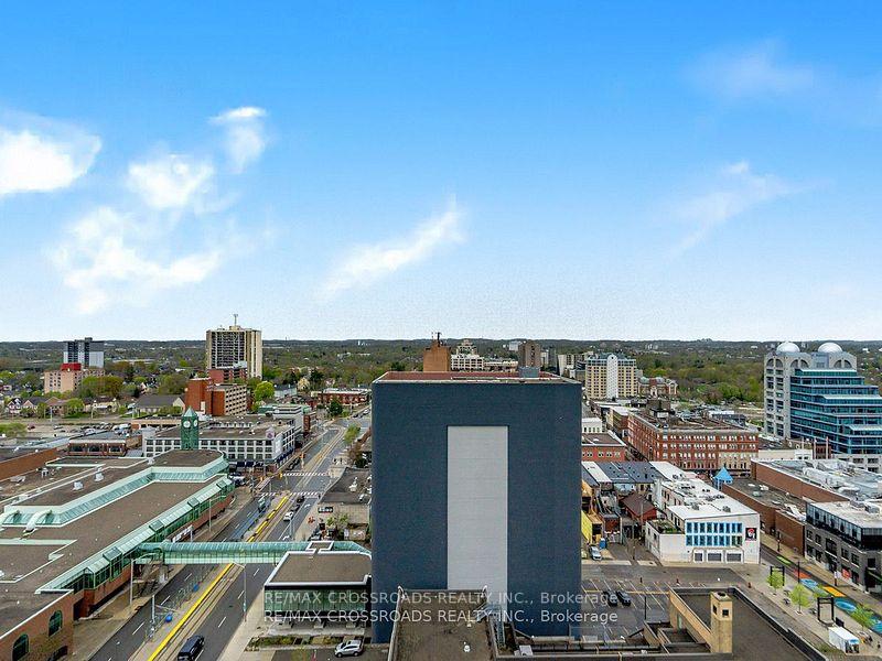 Welcome to DTK Condos in Downtown Kitchener, home to the tallest tower in the area. This 588 Sqft 1+Den (Den can be a second bedroom) This unit features two washrooms, a modern open kitchen, and a spacious living area. The 9-foot ceilings and open balcony provide stunning views and an airy feel. Included with the unit are a parking space and locker combo, adding convenience to urban living. DTK Condos is ideally located within walking distance to urban amenities, public transit, and the LRT, offering a blend of comfort, luxury, and accessibility. Whether you're looking for a vibrant lifestyle in the heart of the city seeking a modern living space with breathtaking views, DTK Condos provides the perfect setting.