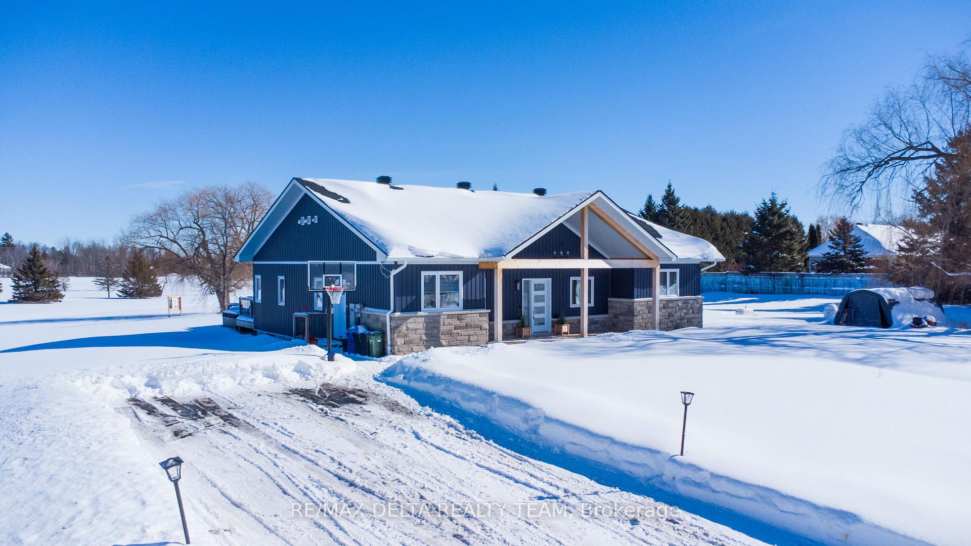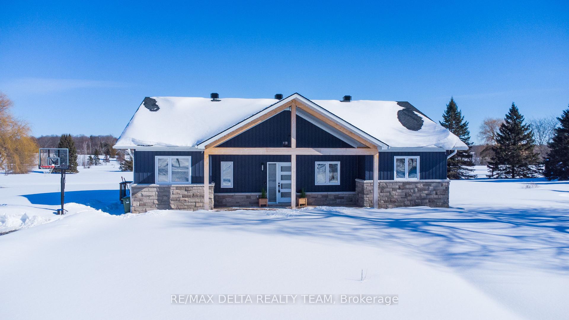 Welcome to 4645 McNeely Road a stunning 2023-built bungalow set on nearly 1.3 acres, backing onto the picturesque Bearbrook Golf Course. Tarion builder TSH Homes proudly crafted this quality-built custom home with Zip System R-Sheathing, ensuring enhanced durability and energy efficiency. This rare offering features four bedrooms on the main level, designed with both family living and modern elegance in mind. The private primary suite is thoughtfully tucked away, complete with a sunlit walk-in closet, a spa-inspired ensuite, and walkout access to a covered deck overlooking the fairway. A versatile den provides the perfect space for working from home. At the heart of the home, the chefs kitchen and great room impress with quartz countertops, a built-in wall oven, wine fridge, pot filler, and rich hand-scraped hickory hardwood floors an inviting space for gatherings and entertaining. Three additional bedrooms and a beautifully appointed main bath with designer finishes complete the main floor. The lower level, with 9-foot ceilings and a rough-in for a full apartment, offers incredible flexibility ideal for an in-law suite or income potential. With a septic system sized to accommodate both a one-bedroom apartment and a two-bedroom coach house, the property is perfectly suited for multigenerational living or future expansion. Additional highlights include a Generac outdoor gas generator for year-round peace of mind. Blending luxury, comfort, and endless possibilities, this home is truly one of a kind. 24hr Irrevocable